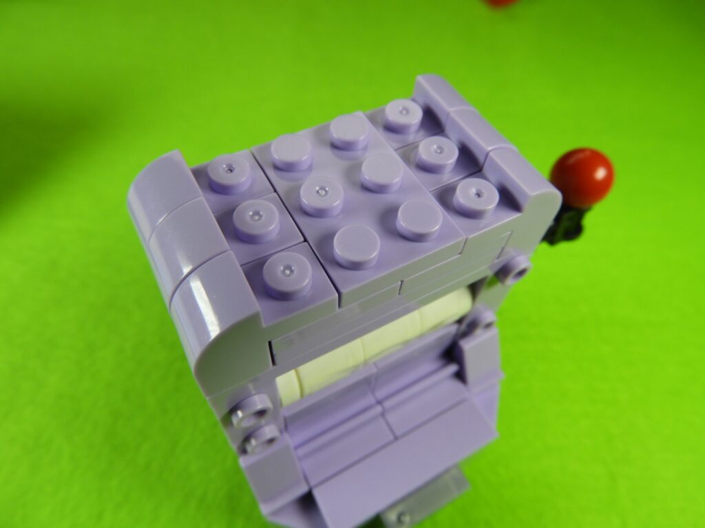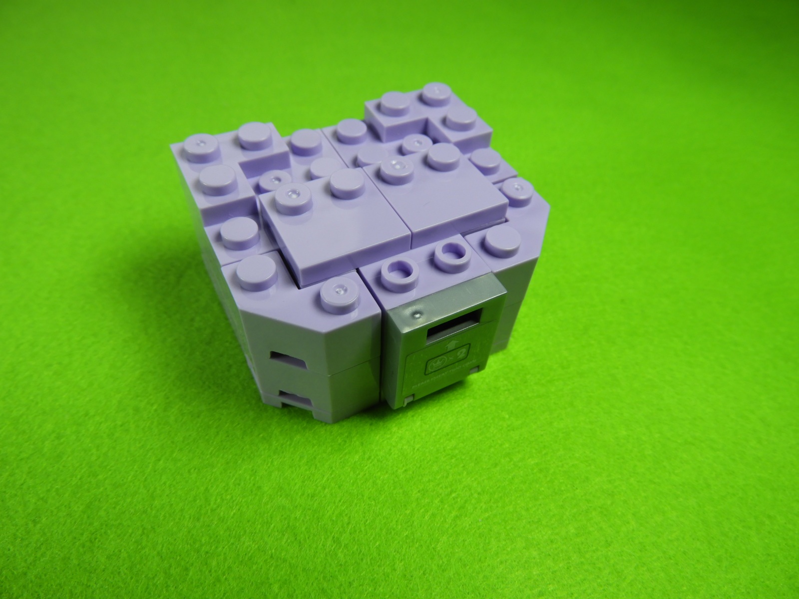 3.上記で組み立てたブロックに、下記写真のように紫ブロック2個を取り付けます。
