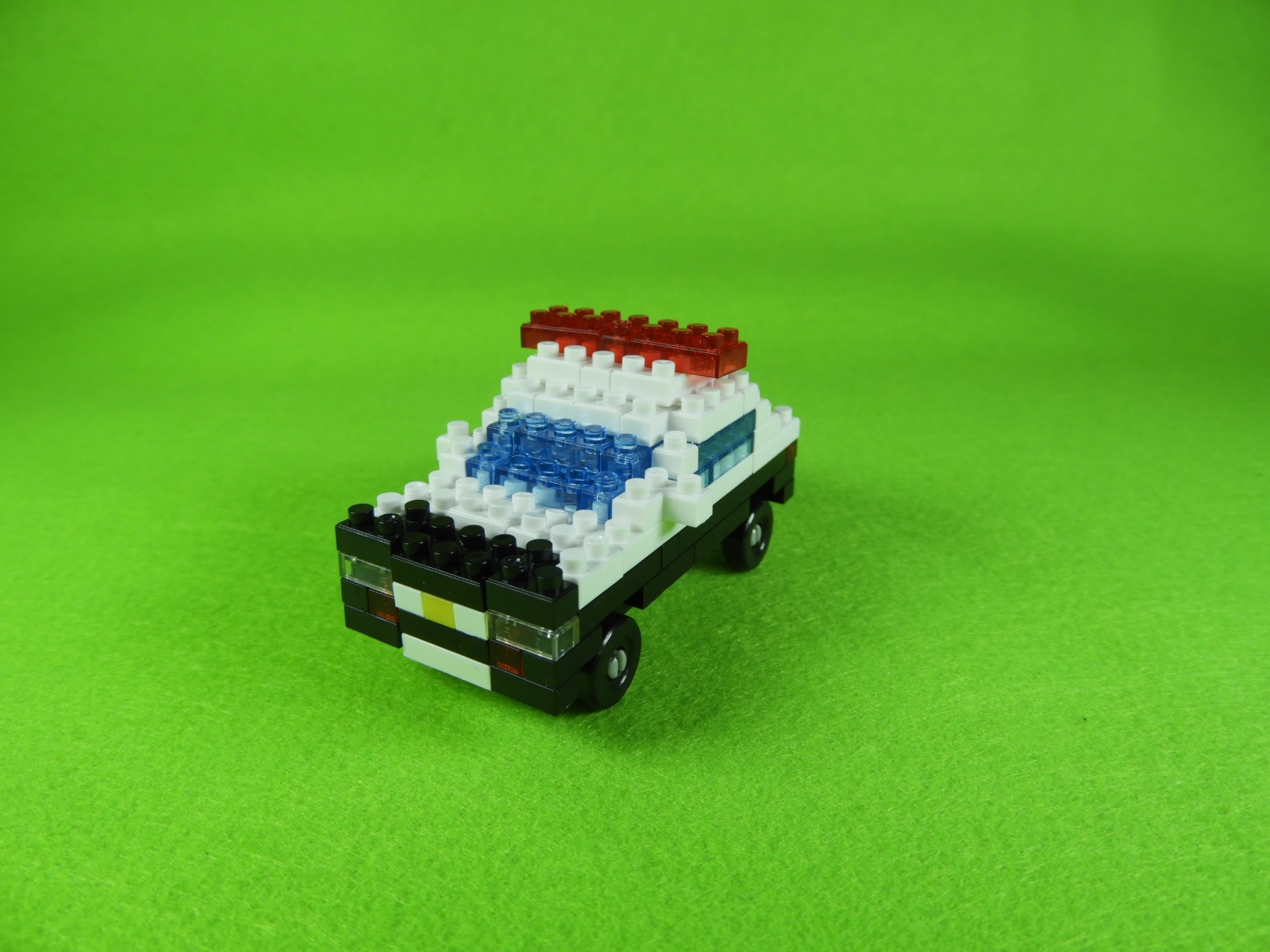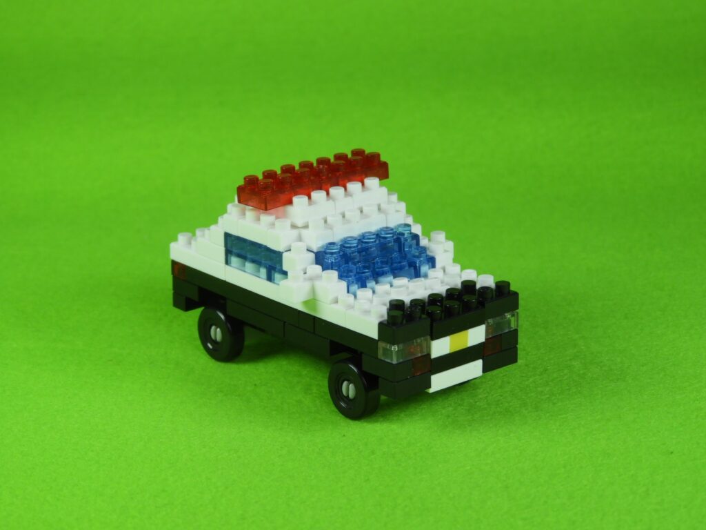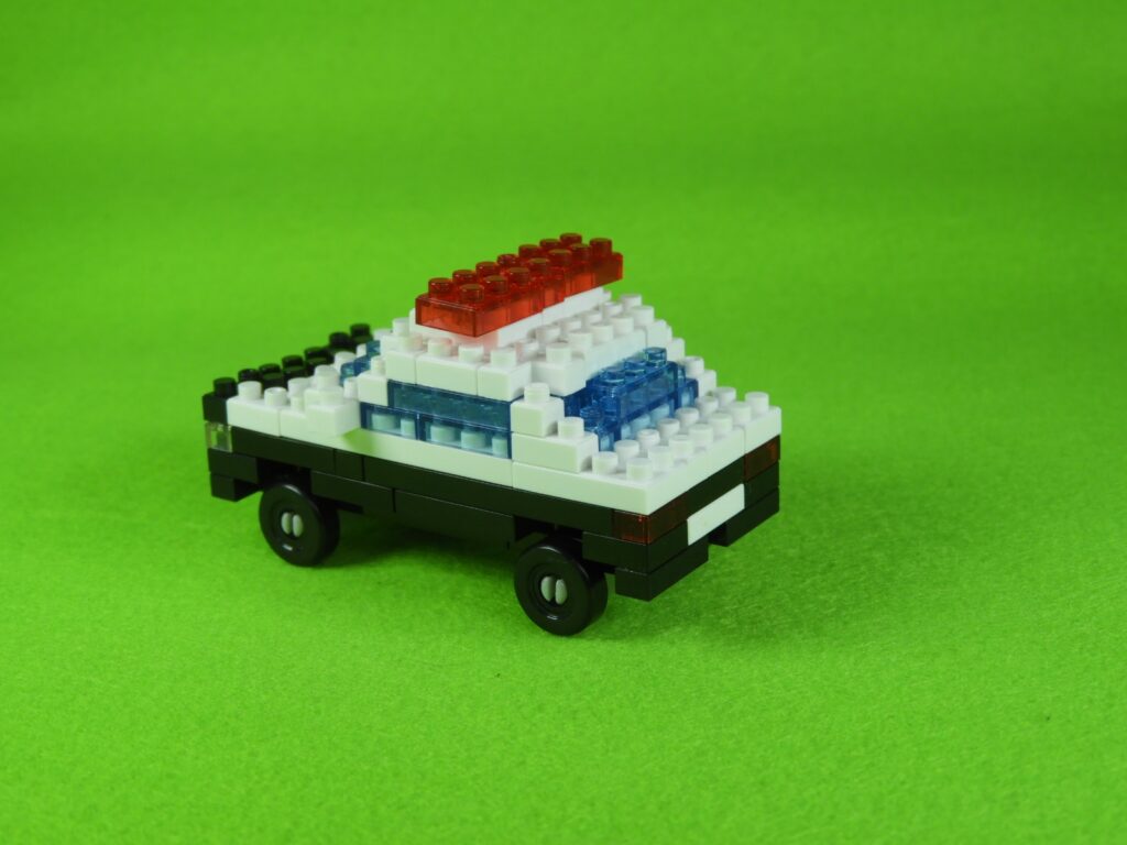 以上、ダイソーのプチブロックはたらくくるま2 パトカーの作り方でした。L字ブロックがバックミラーなっているのがポイントですね♪