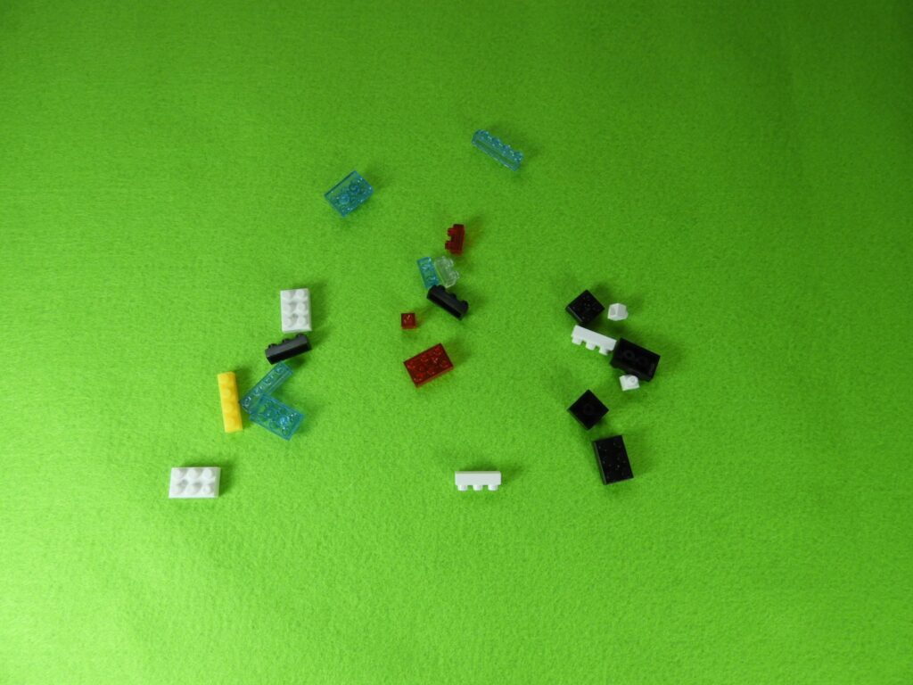 それでは工程6番で使用するブロックを並べます。工程6番はパトカーのタイヤになります。