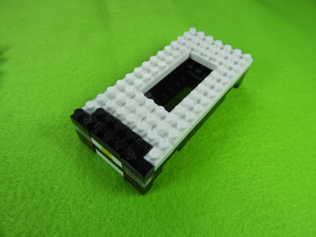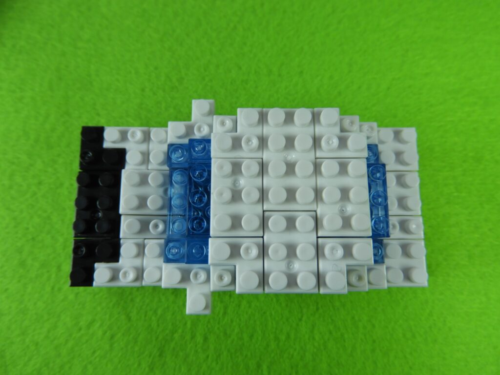 1.工程4番で組み立てたブロックの上に、2段目の白ブロック3個をのせます。