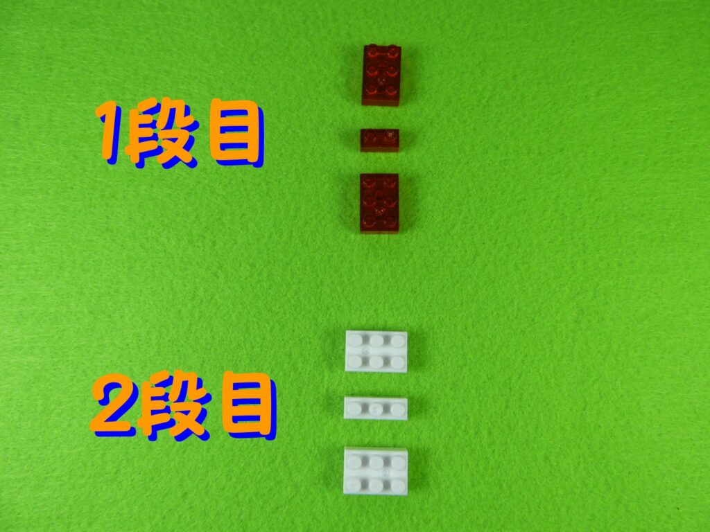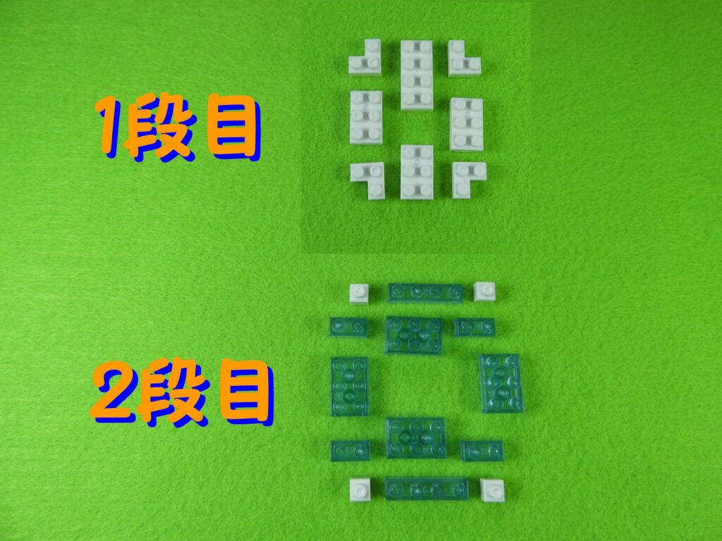 2.上記で組み立てたブロックの上に、1段目のブロックをのせると工程3番は完成します。