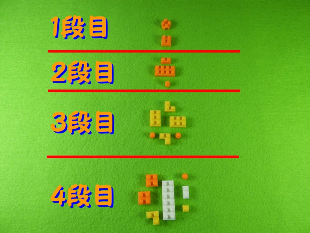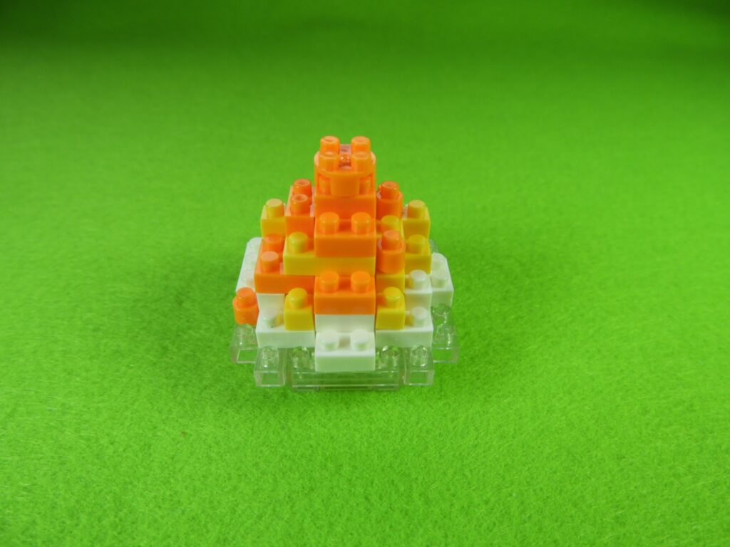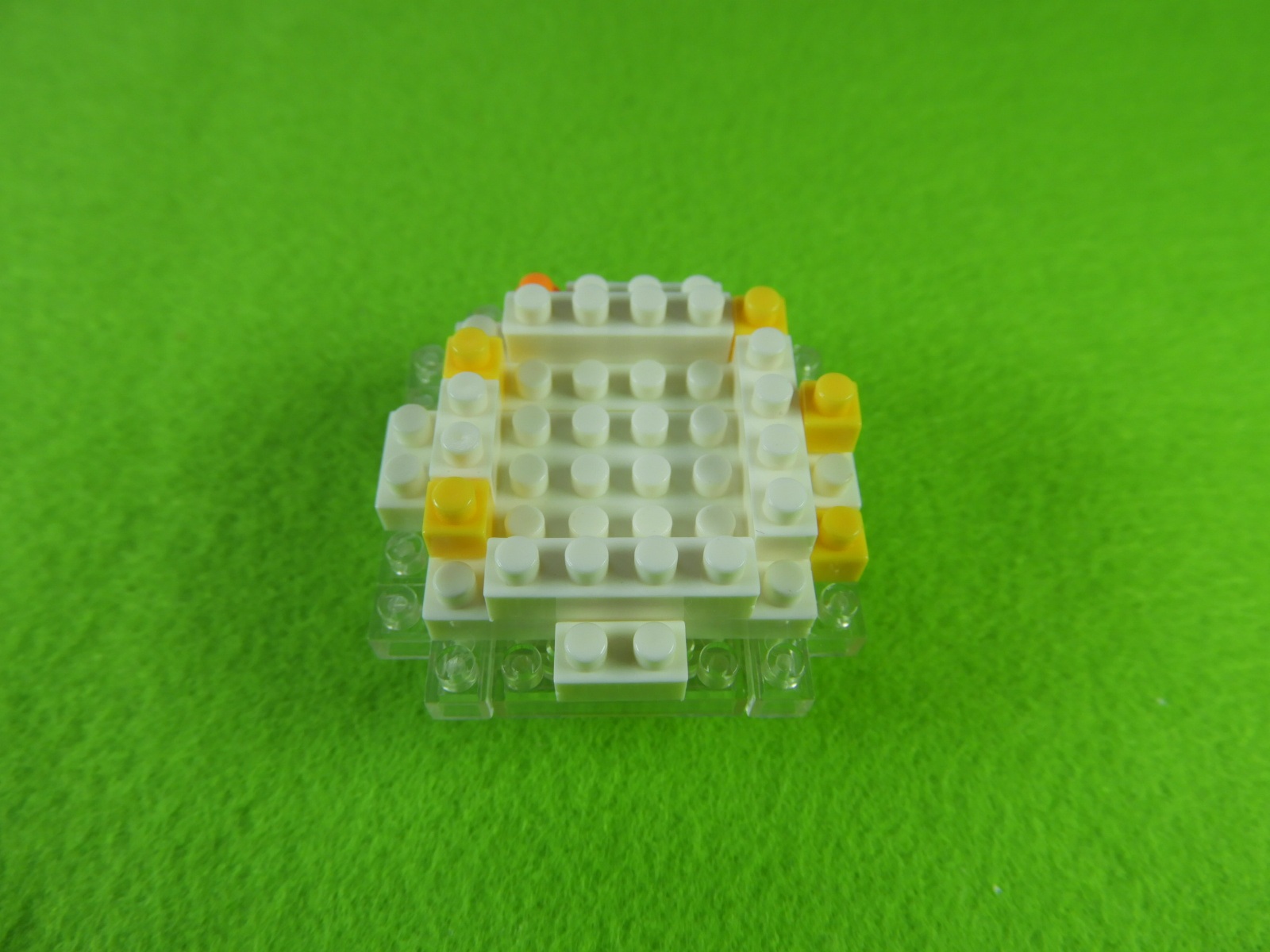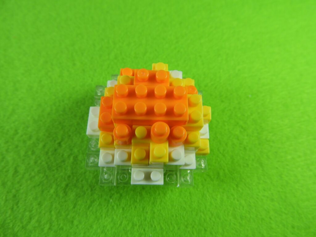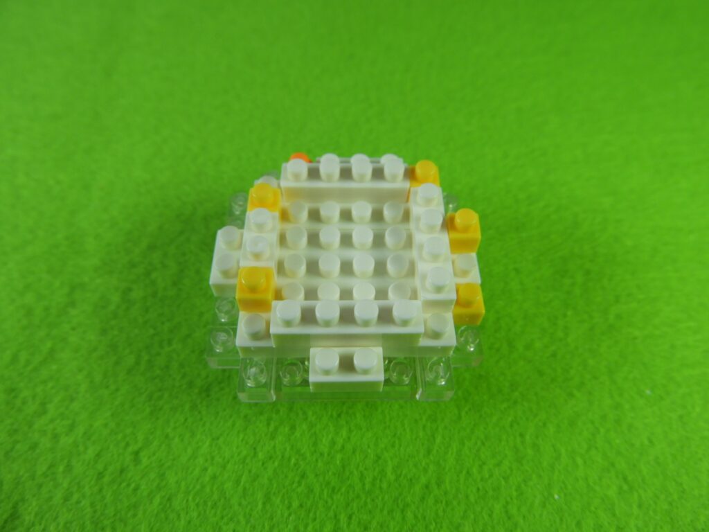 4,最後に、1段目のオレンジブロック2個をのせると工程3番は完成です。