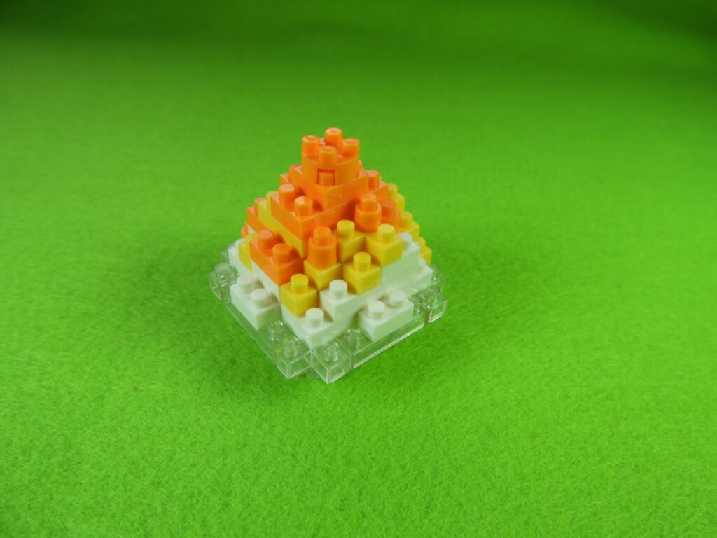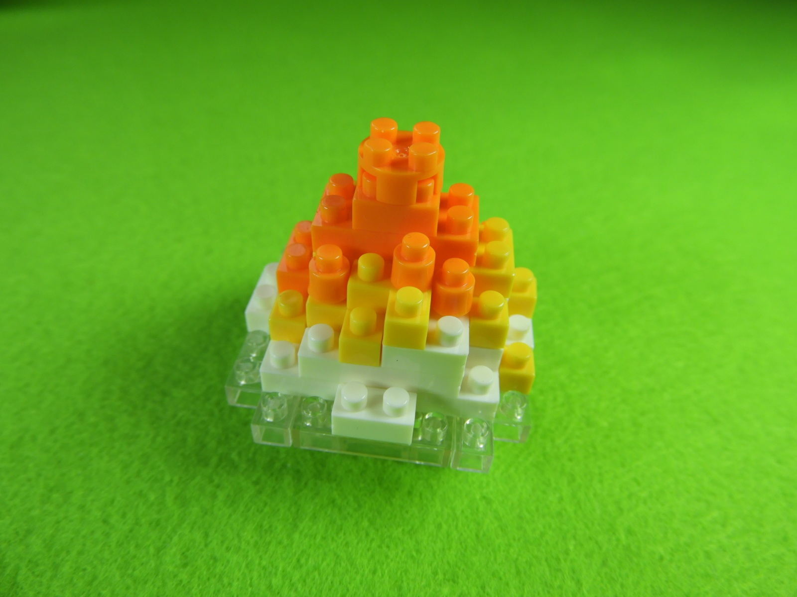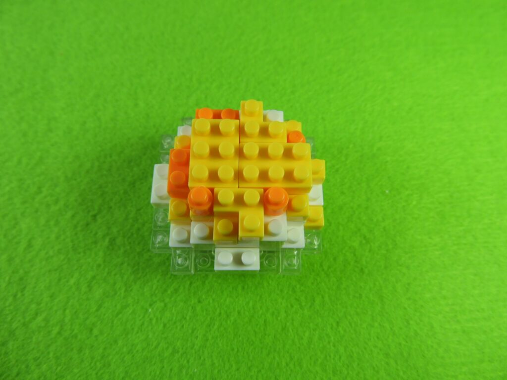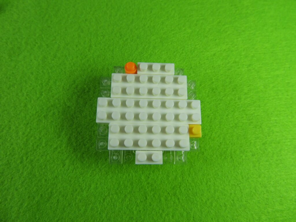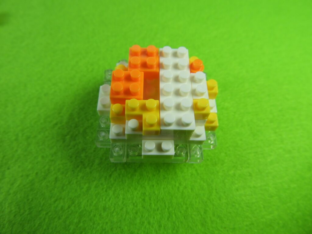 4,最後に、1段目のオレンジブロック2個をのせると工程3番は完成です。