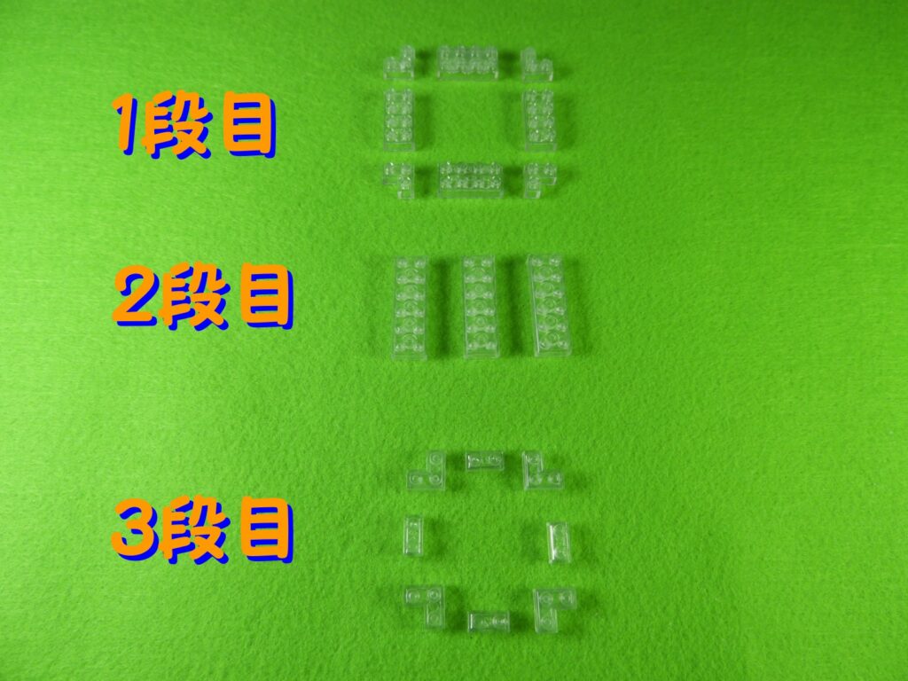 2.上記で組み立てたブロックの下に、3段目のブロックを取り付けると工程1番は完成します。