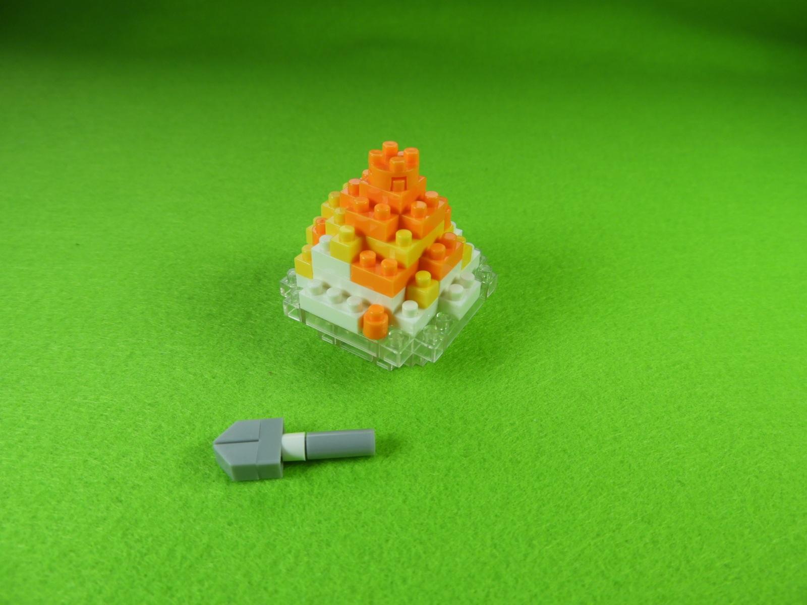 用意したブロックを下記写真のように組み立てるとマンゴーかき氷は完成です。これはかき氷のスプーンになりますよ。作業お疲れ様でした♪