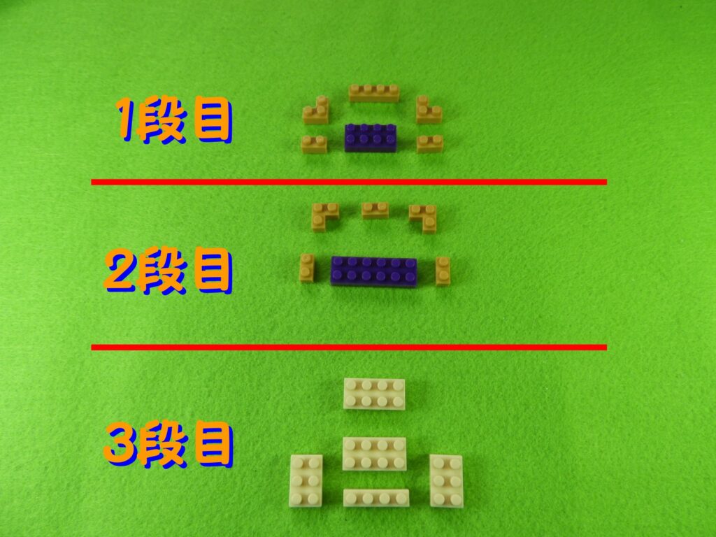 それでは工程3番で使用するブロックを並べます。工程3番で用意するブロックは1個だけです。