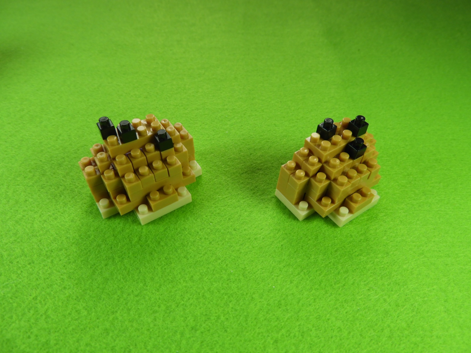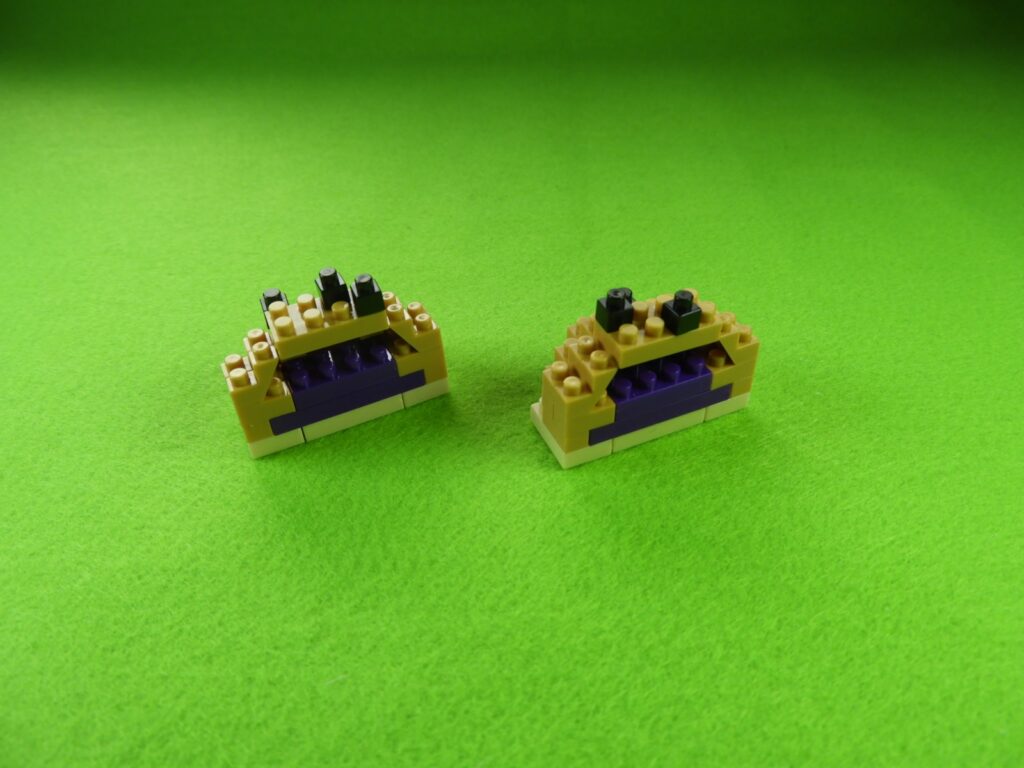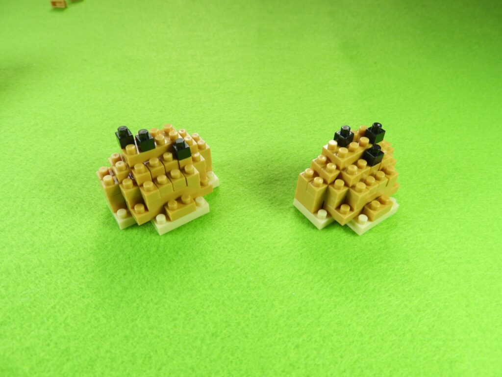 工程5番は、工程1番~工程4番までを繰り返して同じものをもう1セット作ります。工程4番の黒ブロック3個の位置が少し違うので説明書の写真でよく確認してくださいね。