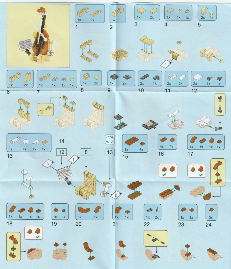 楽器ブロック(2) チェロの説明書はこちら、工程1番~工程24番まで