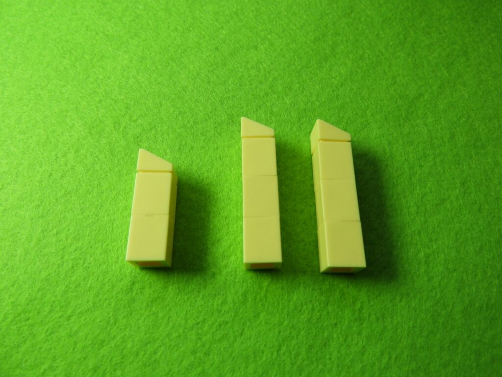 それでは工程1番で使用するブロックを並べます。用意したブロックを下記写真のように組み立てると工程1番は完成します。
