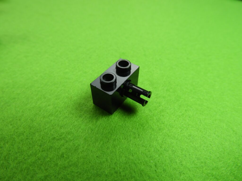 それでは工程2番で使用するブロックを並べます。1.最初に、穴の空いた黒ブロックに棒を差し込みます。2.上記で組み立てたブロックと穴の空いた黒ブロックを工程1番で組み立てたブロックに取り付けます。3.上記で組み立てたブロックの上に、残りのブロックをのせると工程2番は完成します。