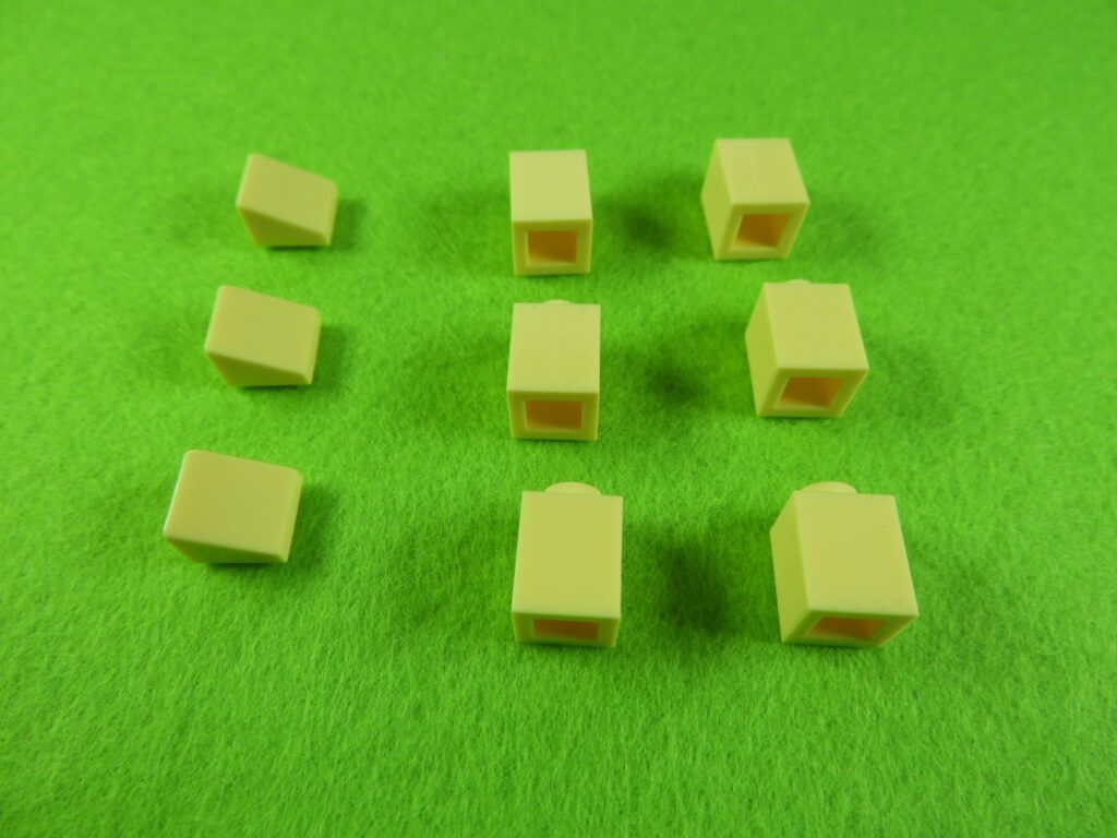 それでは工程9番で使用するブロックを並べます。1.用意したブロックを下記写真のように組み立てます。2.上記で組み立てたブロックと残りのブロックを店舗に取り付けると工程9番は完成します。