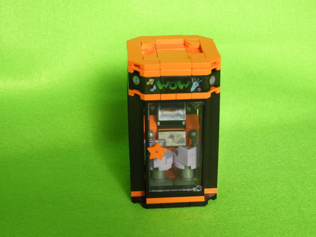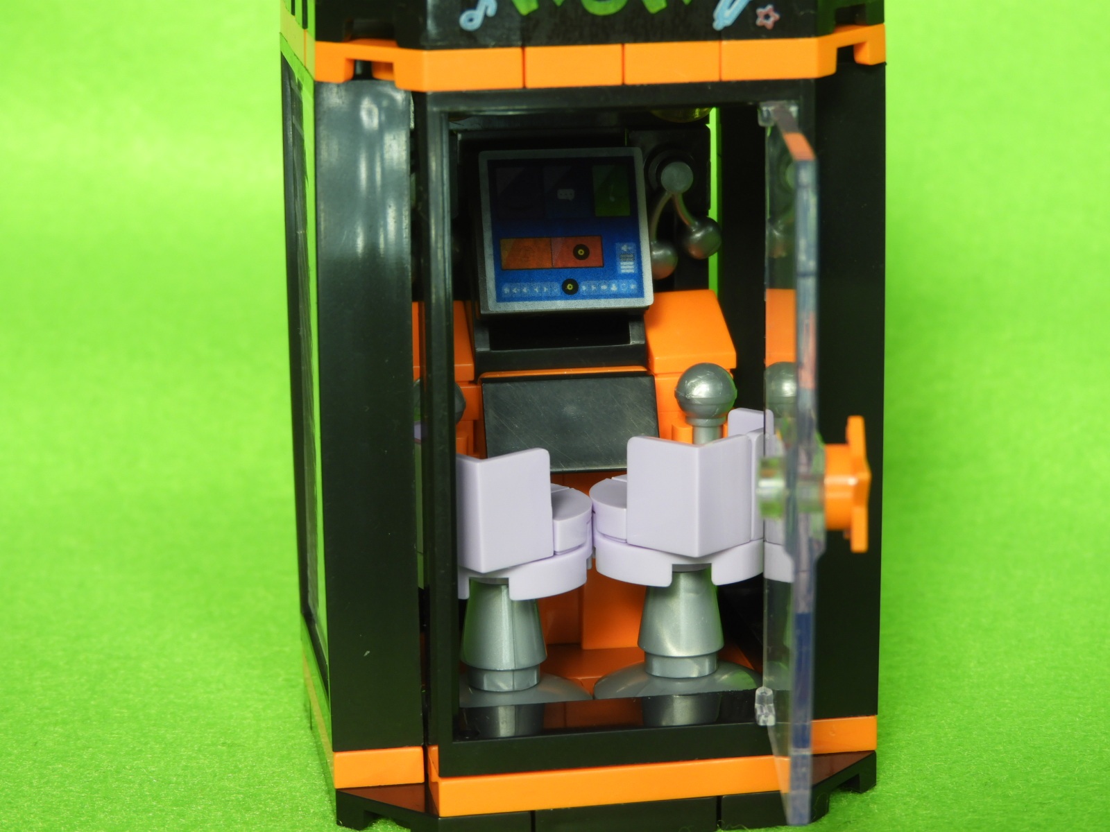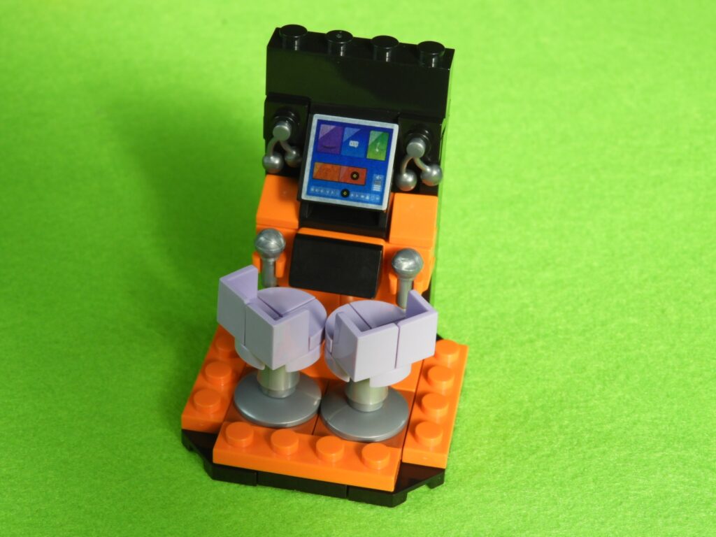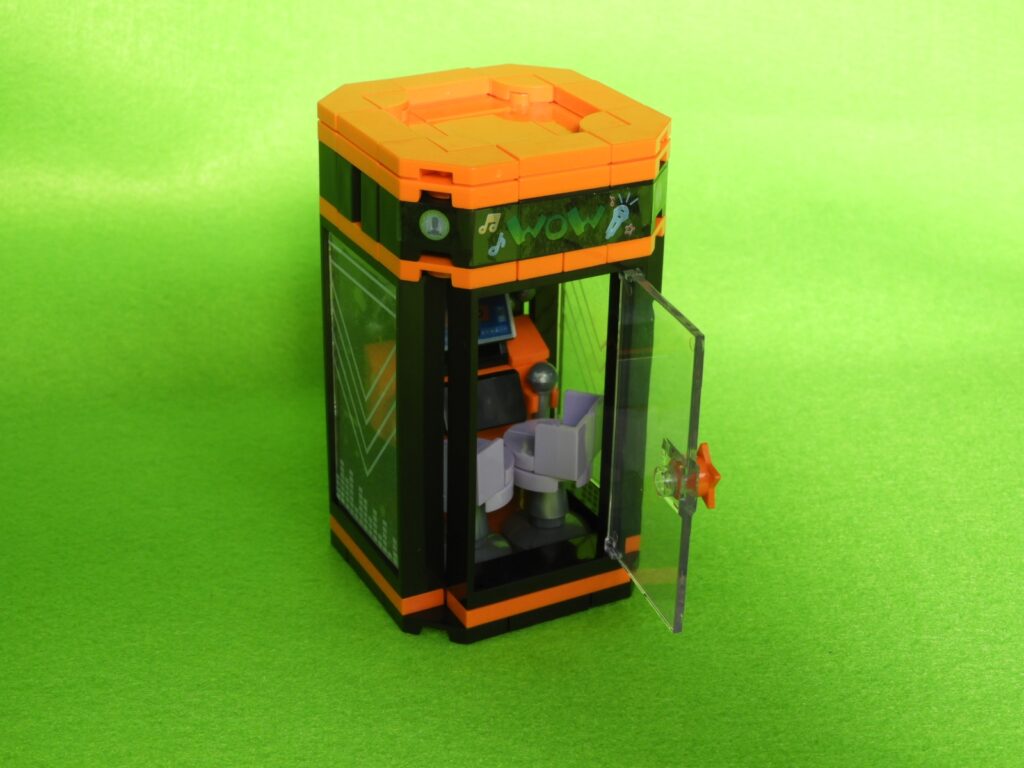 工程25番で組み立てたブロックをカラオケボックスの上部に取り付けて、No.14のシールを貼り付けるとカラオケボックスは完成します。作業お疲れ様でした♪