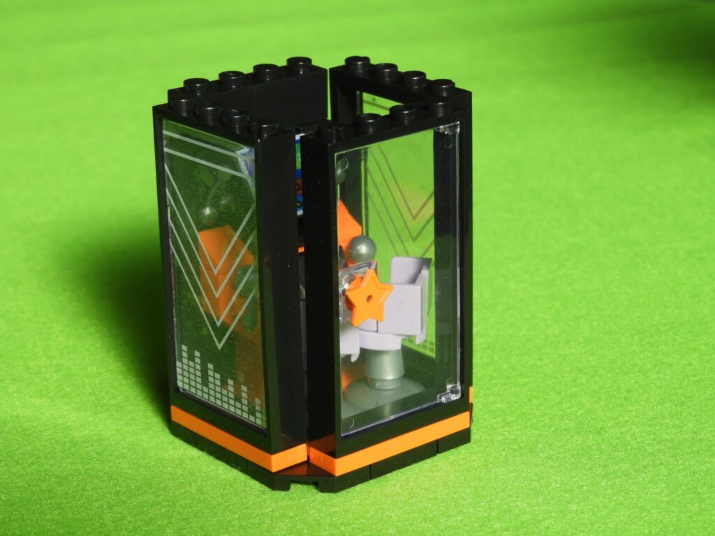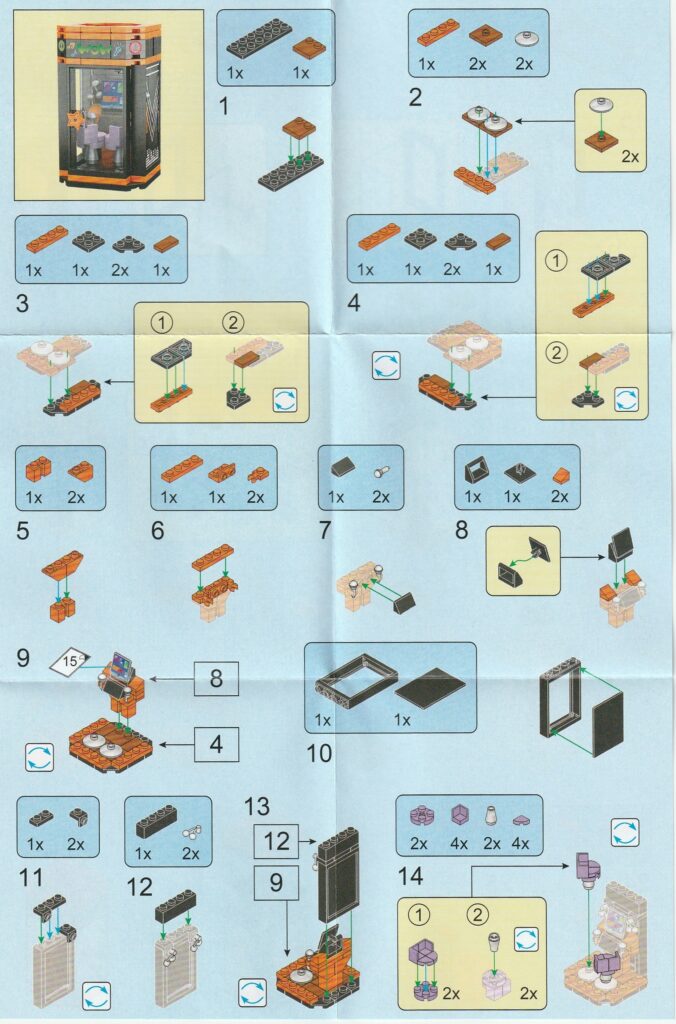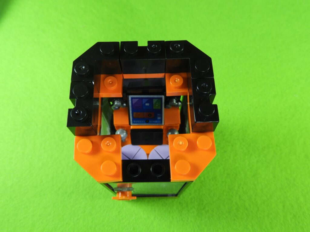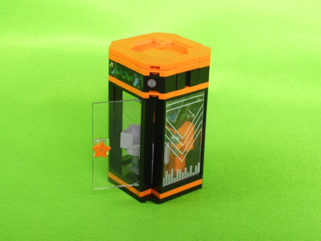工程25番で組み立てたブロックをカラオケボックスの上部に取り付けて、No.14のシールを貼り付けるとカラオケボックスは完成します。作業お疲れ様でした♪