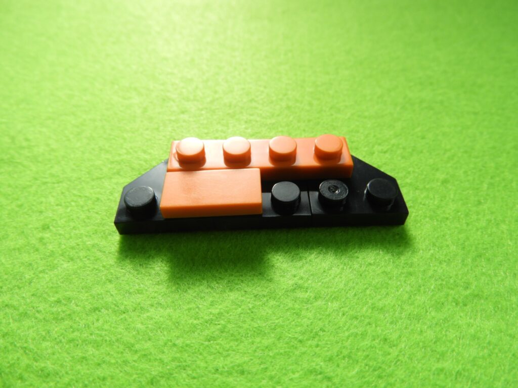 用意した黒ブロック3個を工程10番で組み立てたブロックに取り付けると工程11番は完成します。