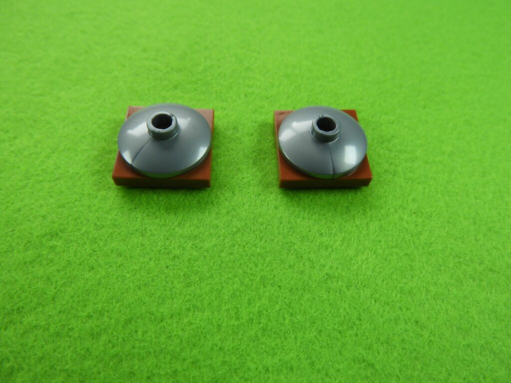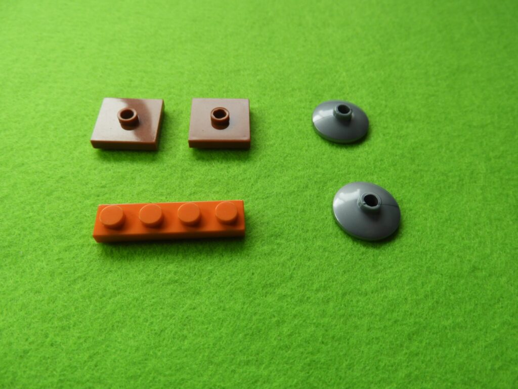 1.茶色ブロックに銀色丸ブロックをのせます。