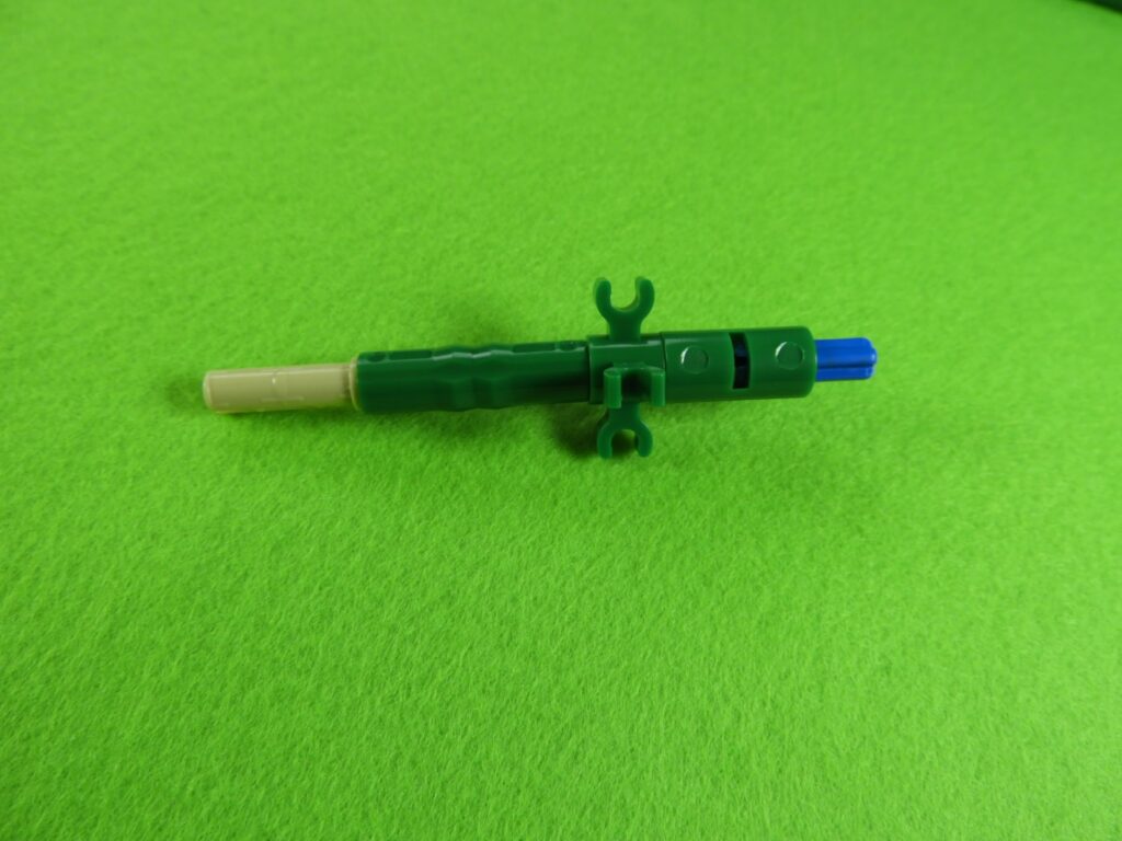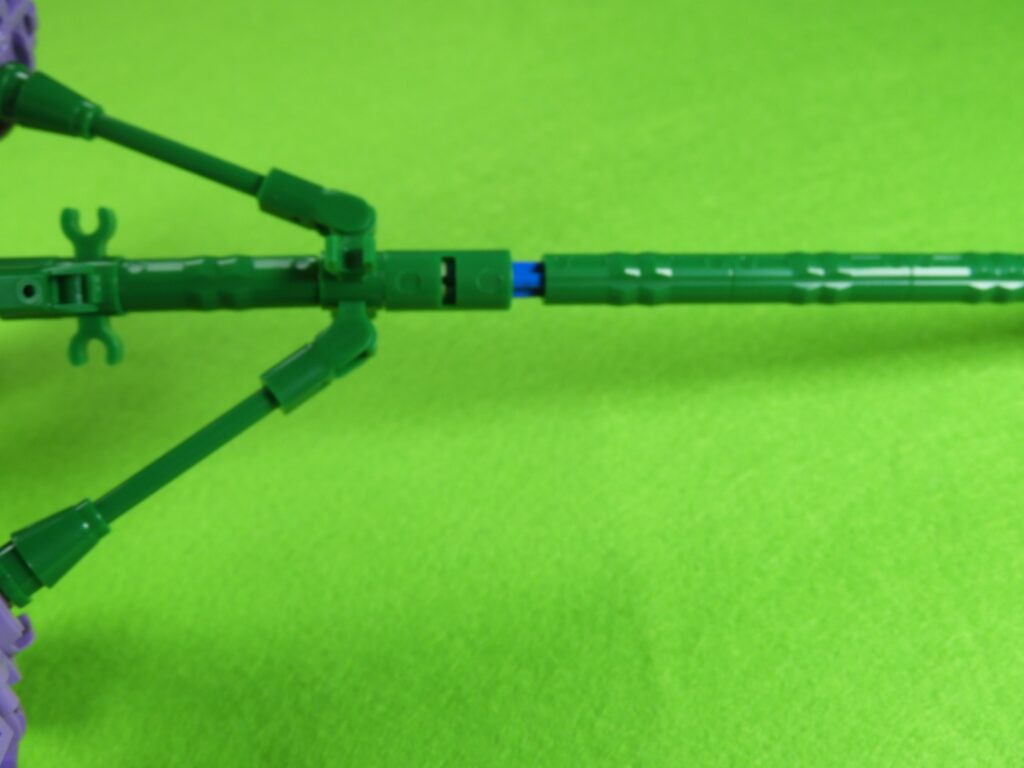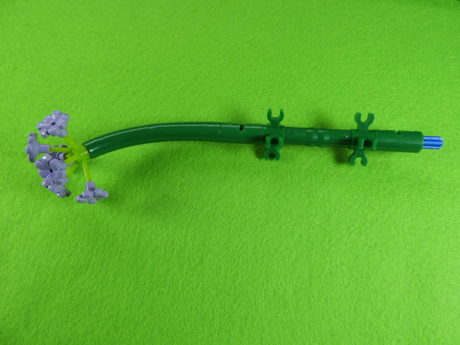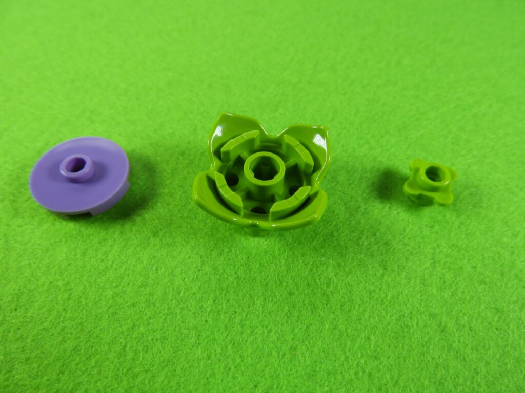 花の裏側に、小さい緑ブロックを取り付けてから長い緑ブロックを取り付けます。