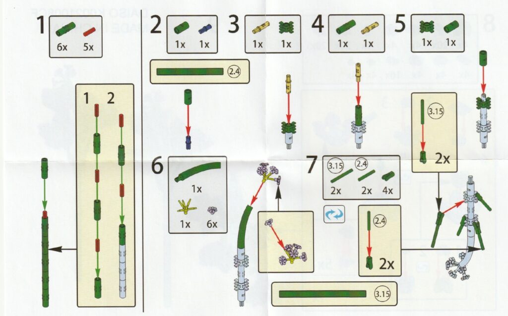 2.上記で組み立てたブロックを工程6番で組み立てたブロックに取り付けます。短い枝は花側、長い枝は根本側に取り付けます。