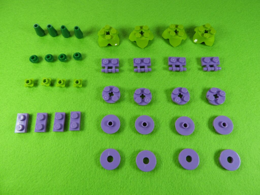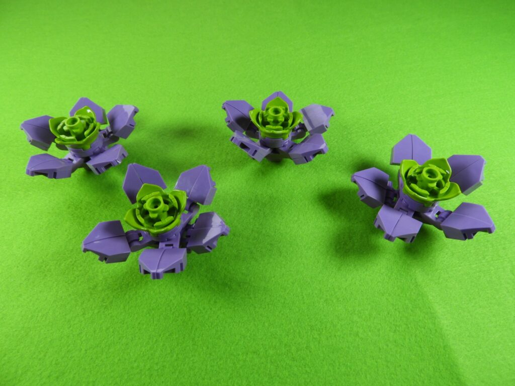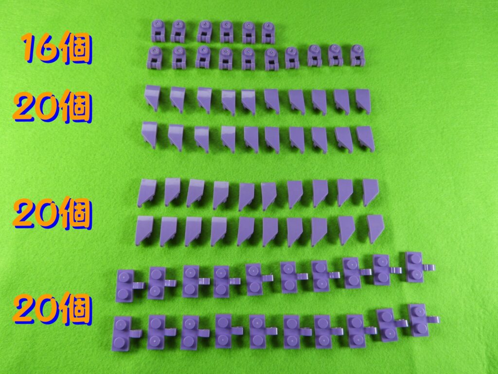 それでは工程8番で使用するブロックを並べます。工程8番はすみれの花になります。花びらを作るので少し作業工程が長くなりますが、同じ作業するだけなのでそれほど難しくないと思います。