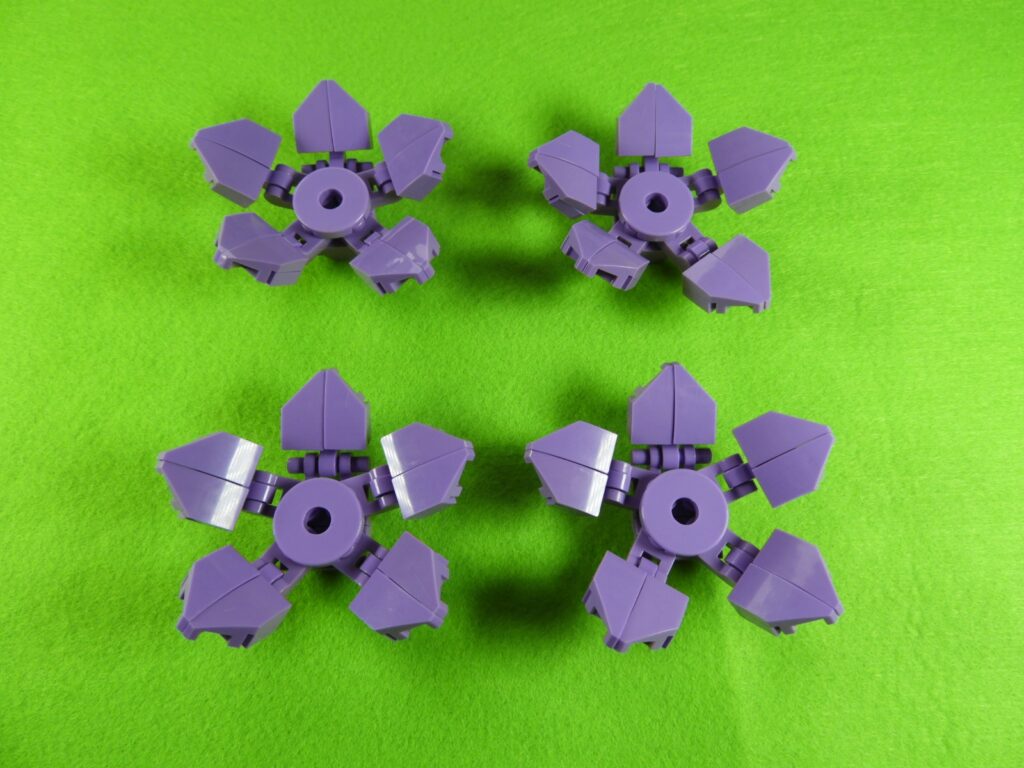 上記で用意したブロックを組み立てて、同じものを20セット作ります。これがすみれの花びらになりますよ。