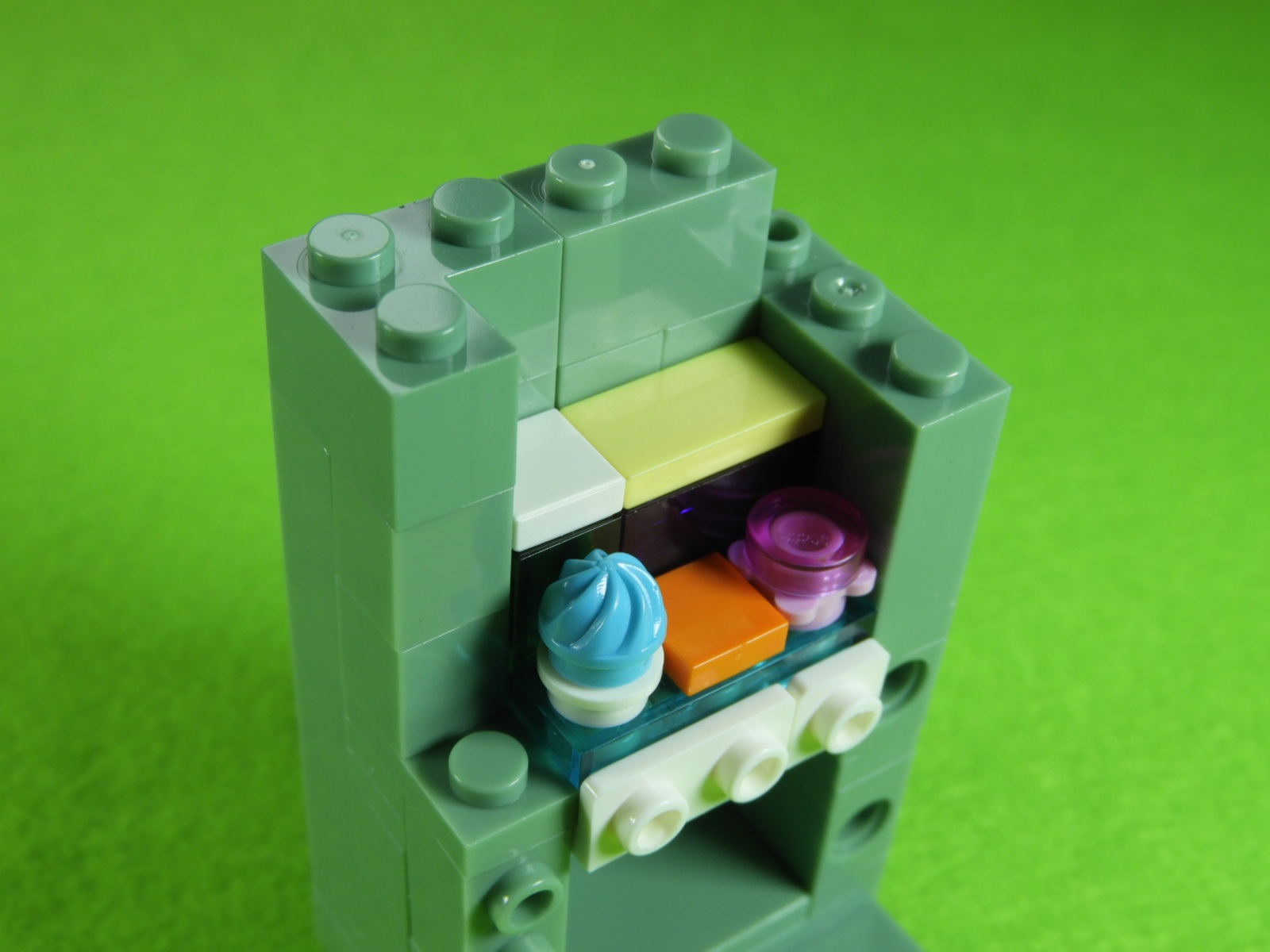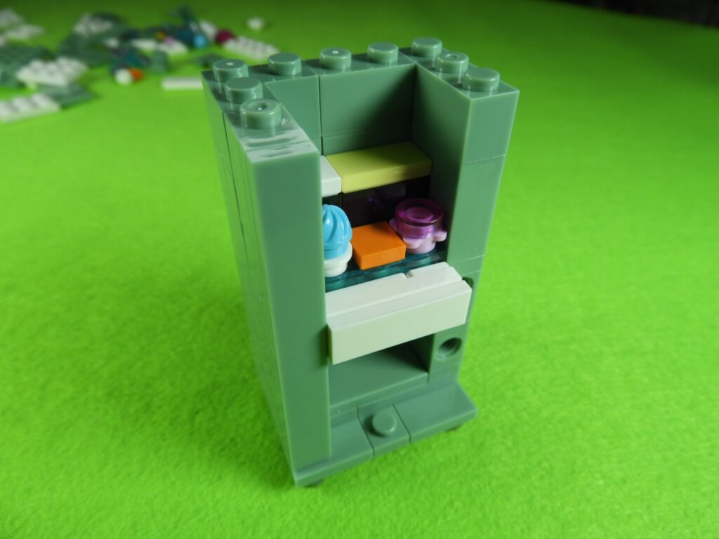3.上記で組み立てたブロックを冷蔵庫の上にのせると工程30番は完成します。