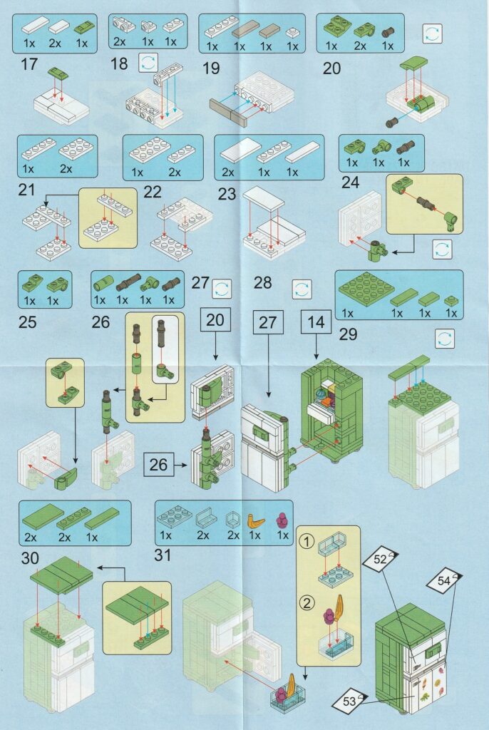 工程20番、26番で組み立てたブロックをくっつけると工程27番は完成します。これは冷蔵庫の扉になりますよ。