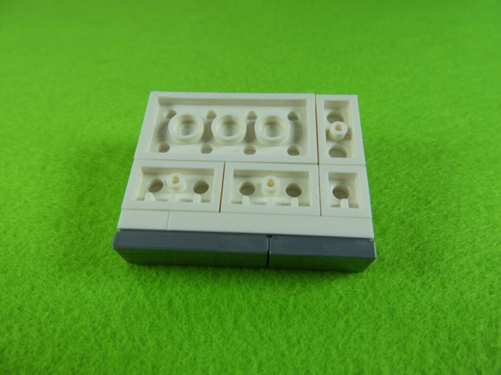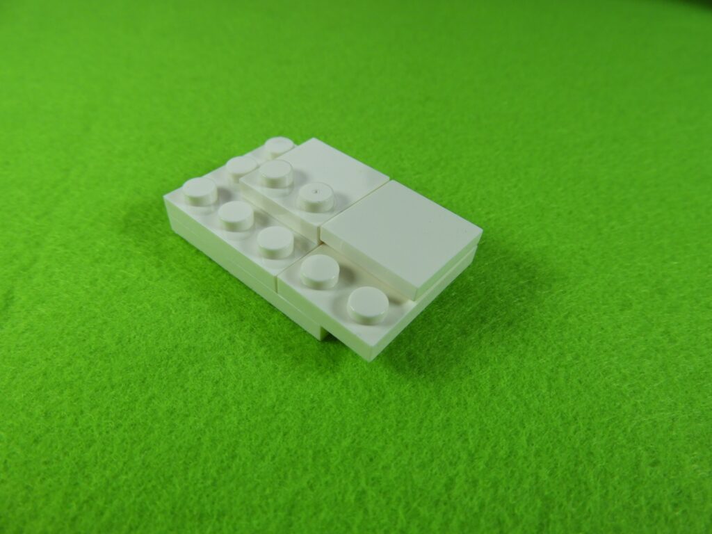 1.正方形(3x3)のブロックの下に、下記写真のようにブロック2個を取り付けます。