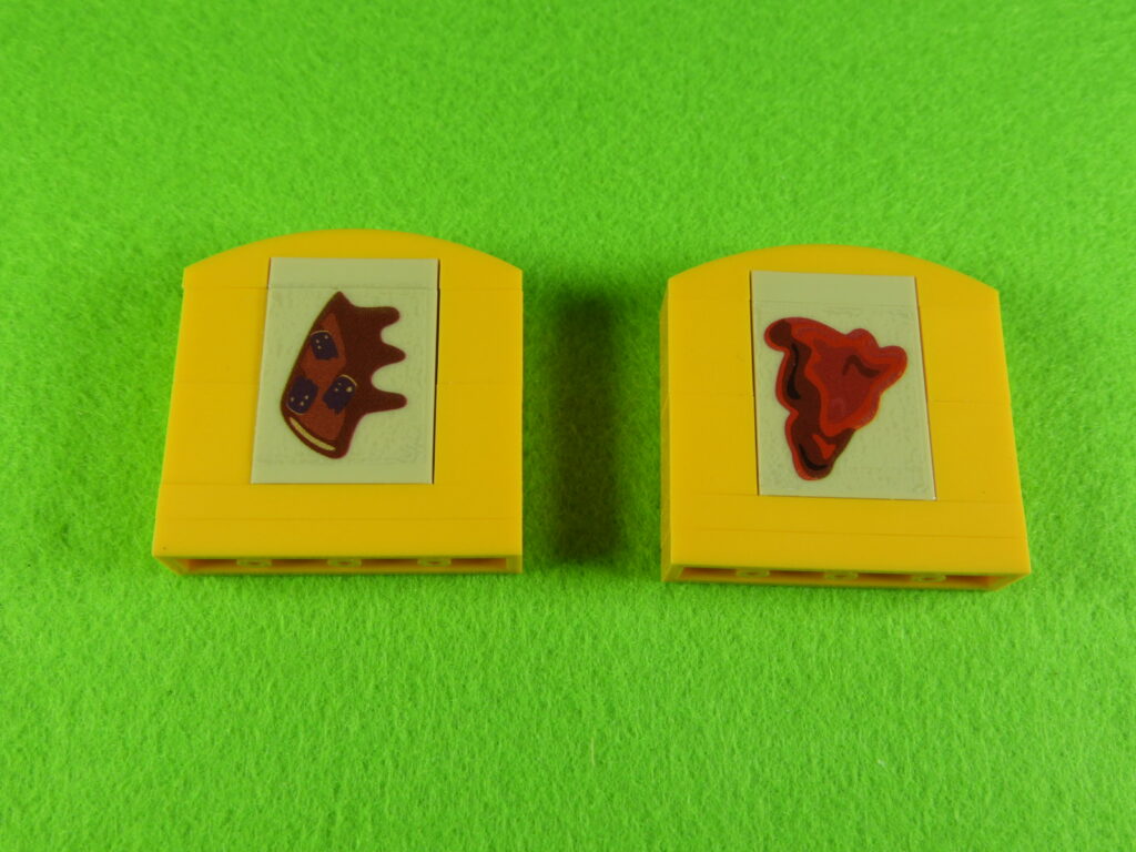 それでは工程20番で使用するブロックを並べます。1.用意したブロックを工程19番で組み立てたブロックに取り付けて、No.9、10のシールを貼り付けます。これはトースターにいれるパンになりますよ。2.上記で組み立てたパン2枚をトースターに入れるとトースターは完成します。作業お疲れ様でした♪