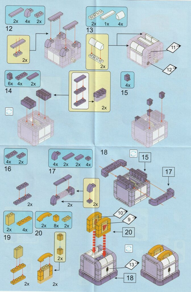 2.残りのブロック4個を工程11で組み立てたブロックに取り付けます。3.次に、1番で組み立てたブロック2セットを取り付けると工程12番は完成します。