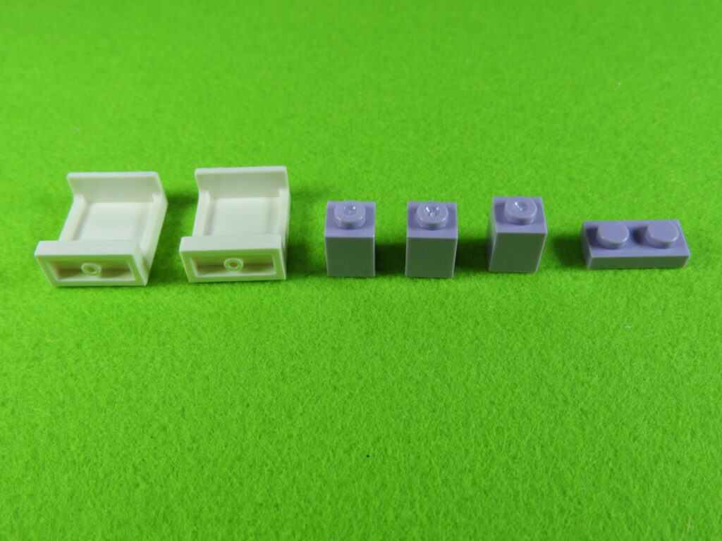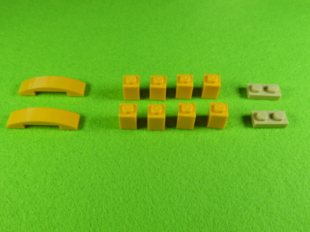 それでは工程8番で使用するブロックを並べます。1.用意したブロックを下記写真のように組み立てます。2.上記で組み立てたブロックを工程7番で組み立てたブロックに取り付けると工程8番は完成します。