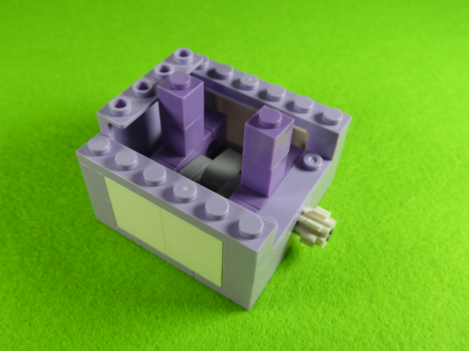 工程15番、17番で組み立てたブロックを取り付けるとトースター本体が出来上がります。
