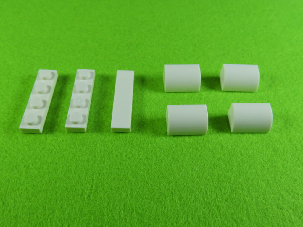 それでは工程7番で使用するブロックを並べます。工程6番で組み立てたブロックに、白ブロック1個を取り付けると工程7番は完成します。