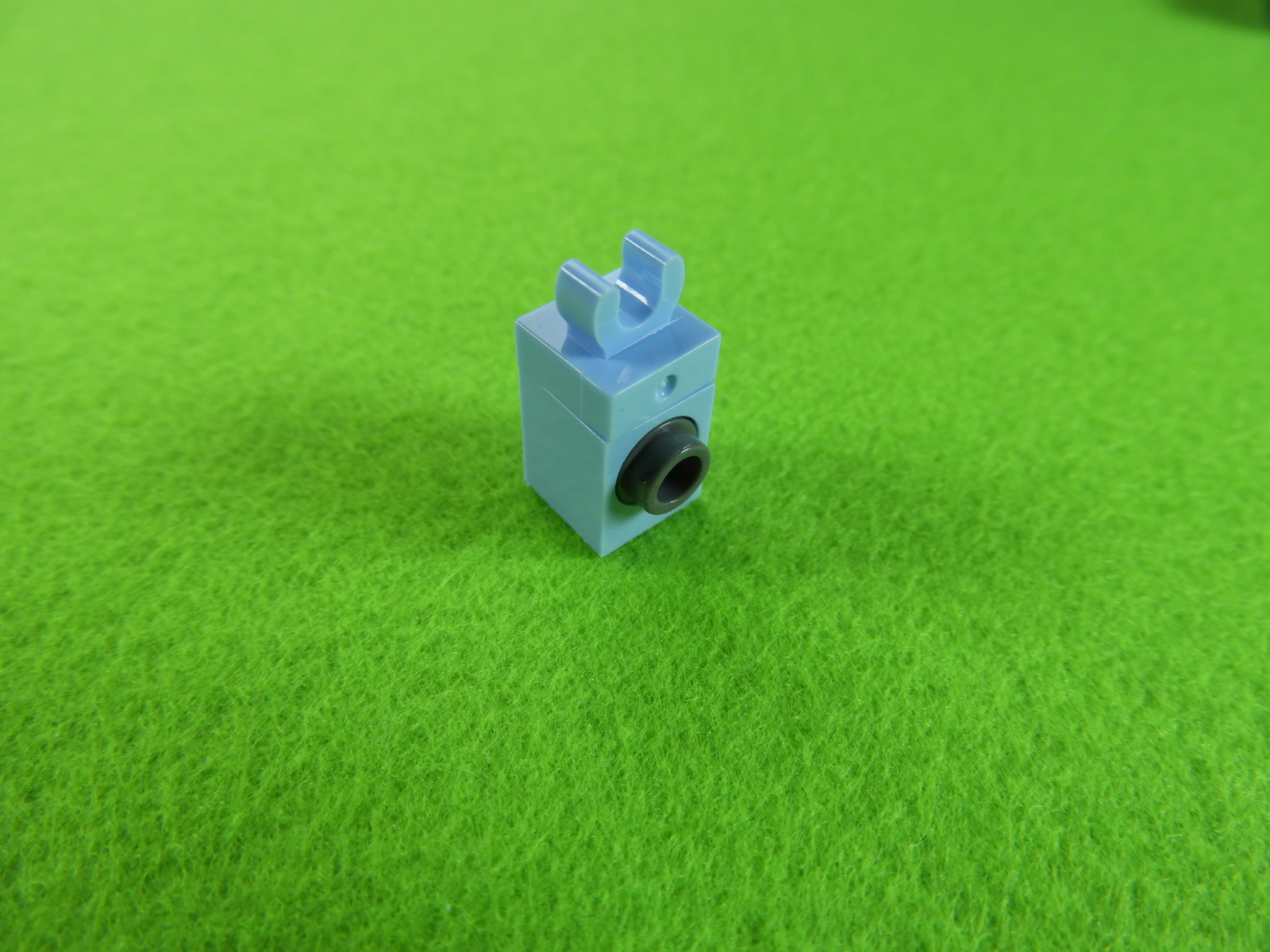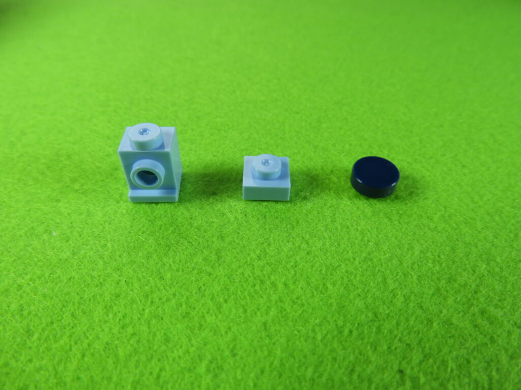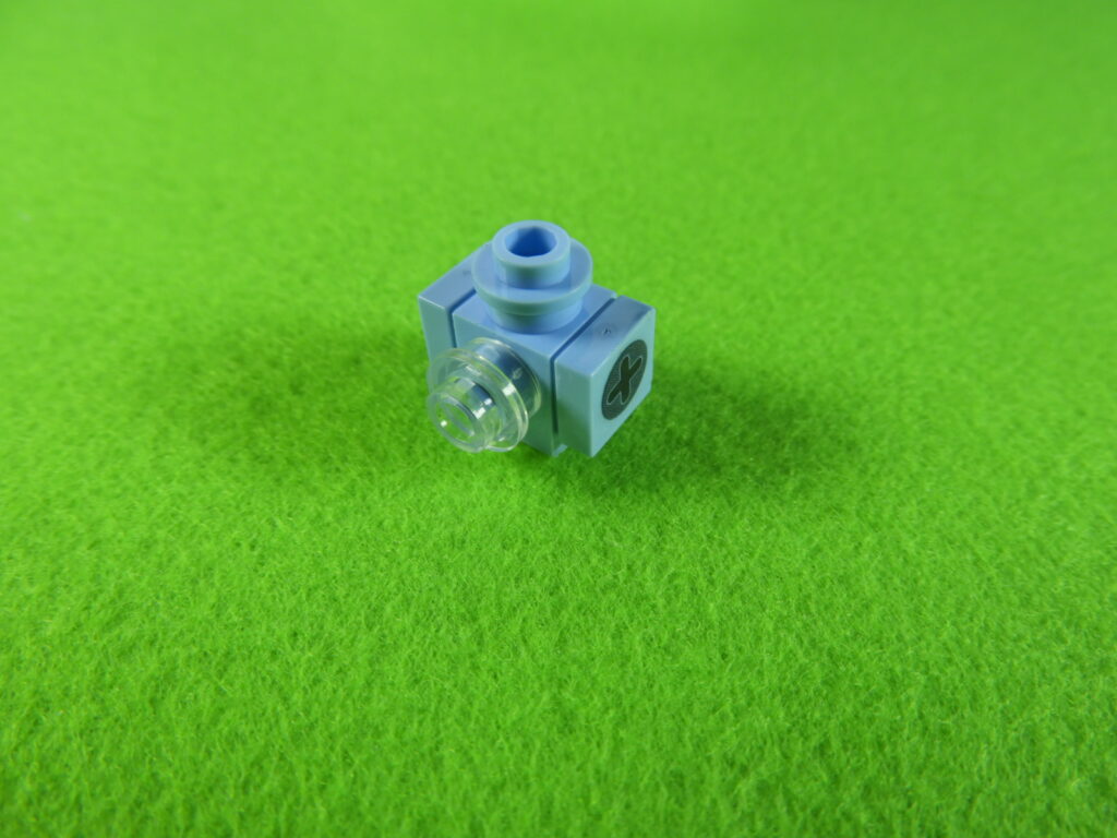 1.水色以外のブロックで下記写真のように組み立てて、No.23のシールを貼り付けます。これは水筒になりますよ。