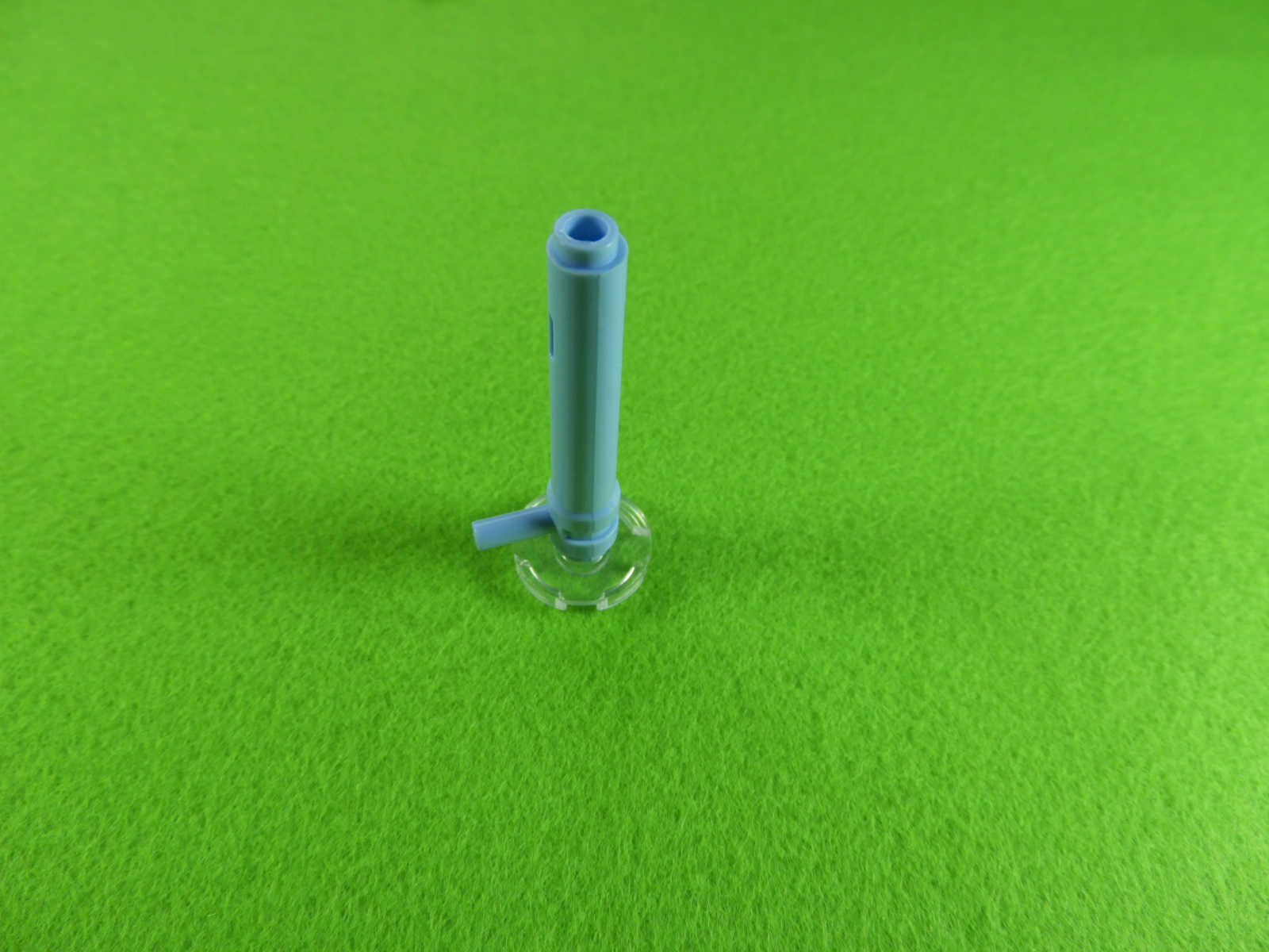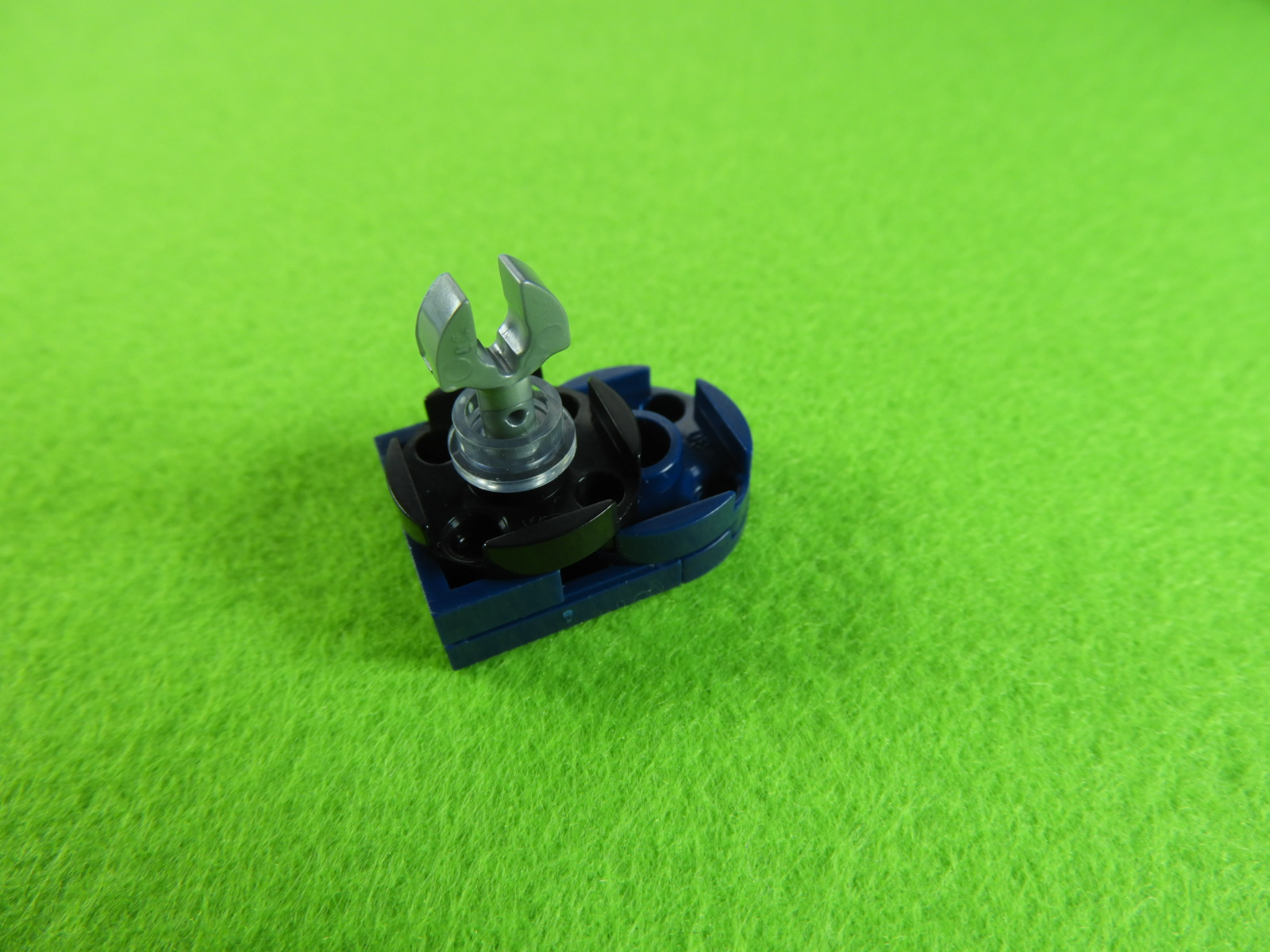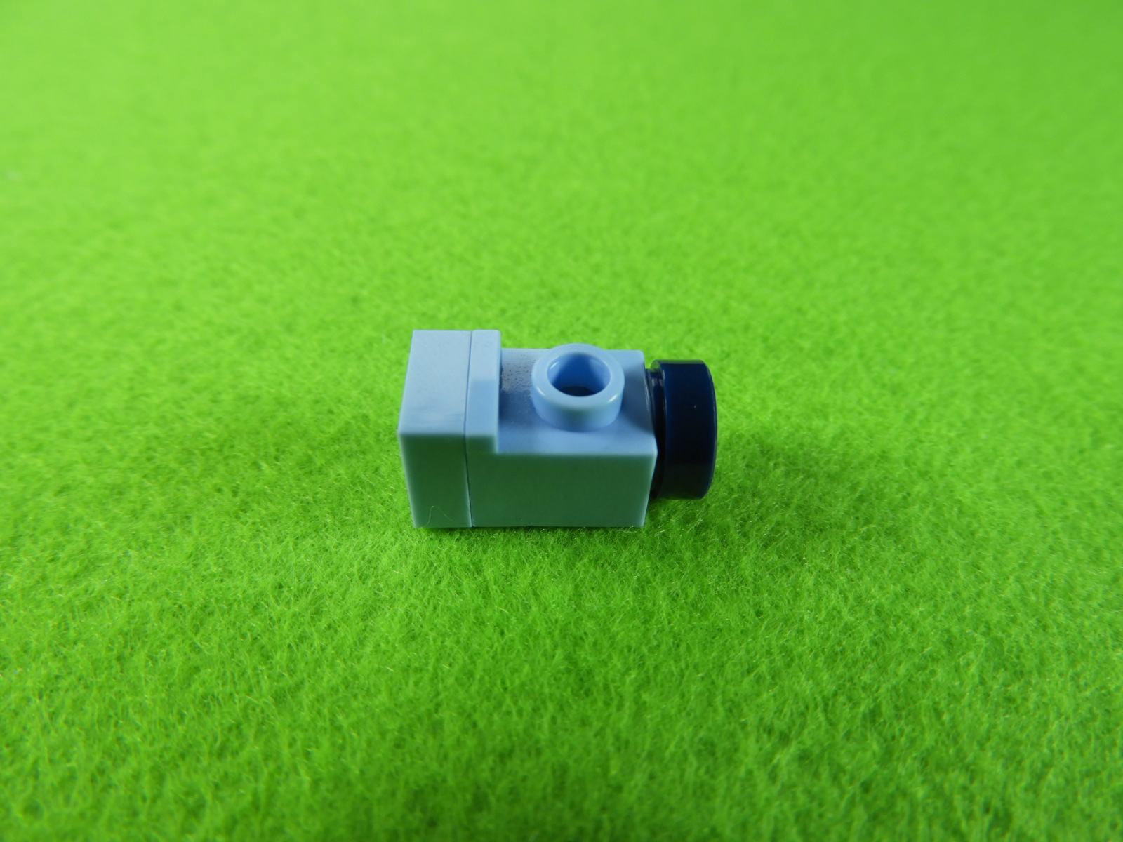 1.水色以外のブロックで下記写真のように組み立てて、No.23のシールを貼り付けます。これは水筒になりますよ。