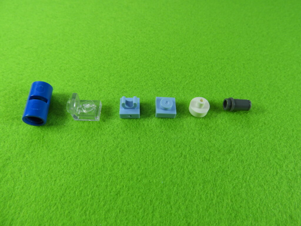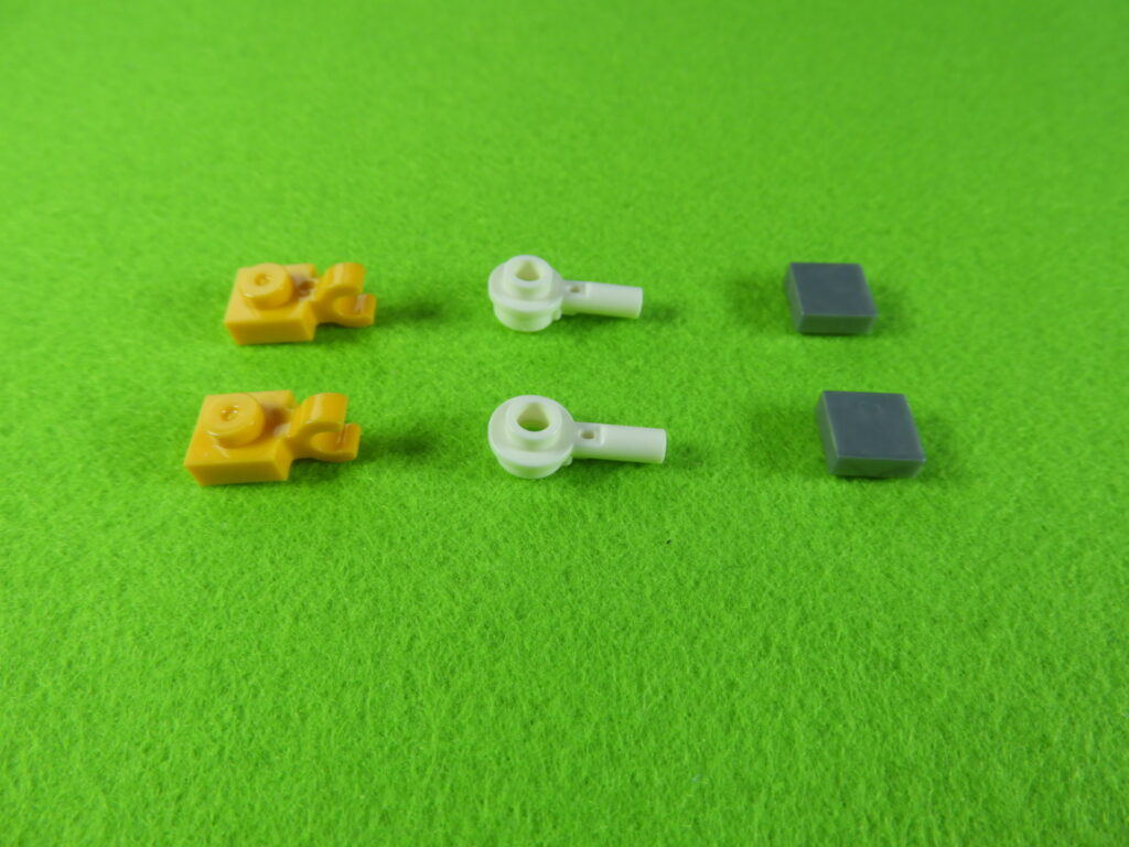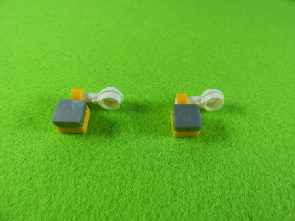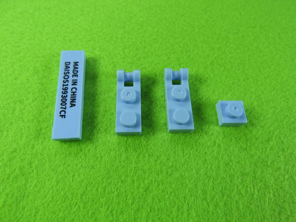 それでは工程10番で使用するブロックを並べます。※下記左のブロックは、文字が印刷されているブロックの使用をお勧めします。水筒を取り付けると文字部分が隠れますよ。