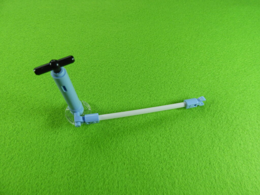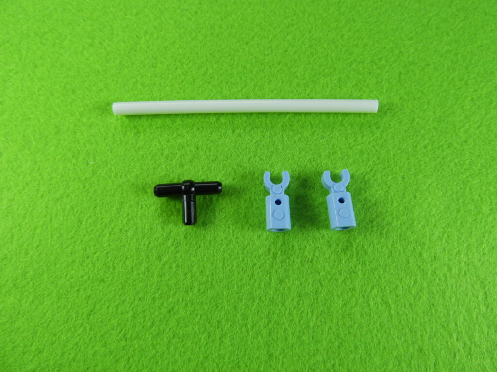 1.黒ブロック2個を下記写真のように組み立てます。棒を折り曲げないように注意して、棒の根元をグッと力を入れて押し込むと黒ブロックにはまります。※はめるときちょっときついかもしれません。