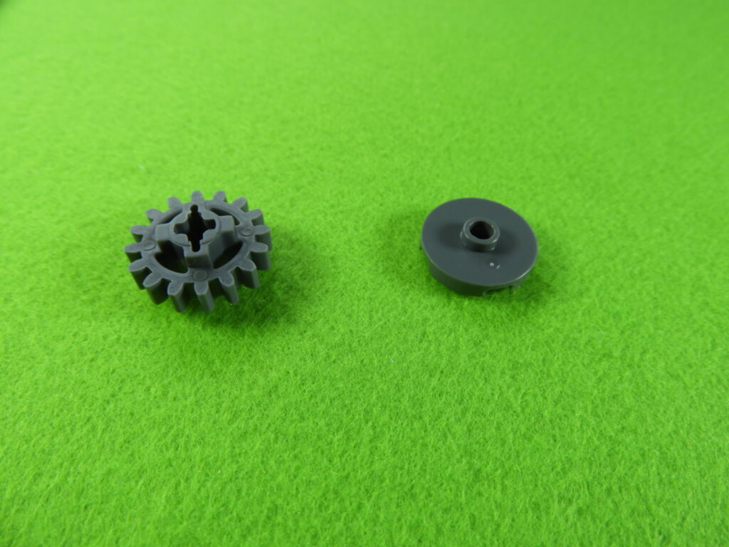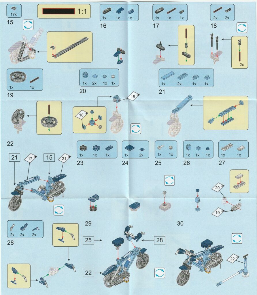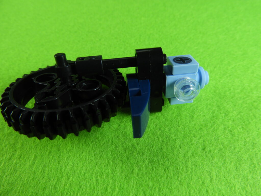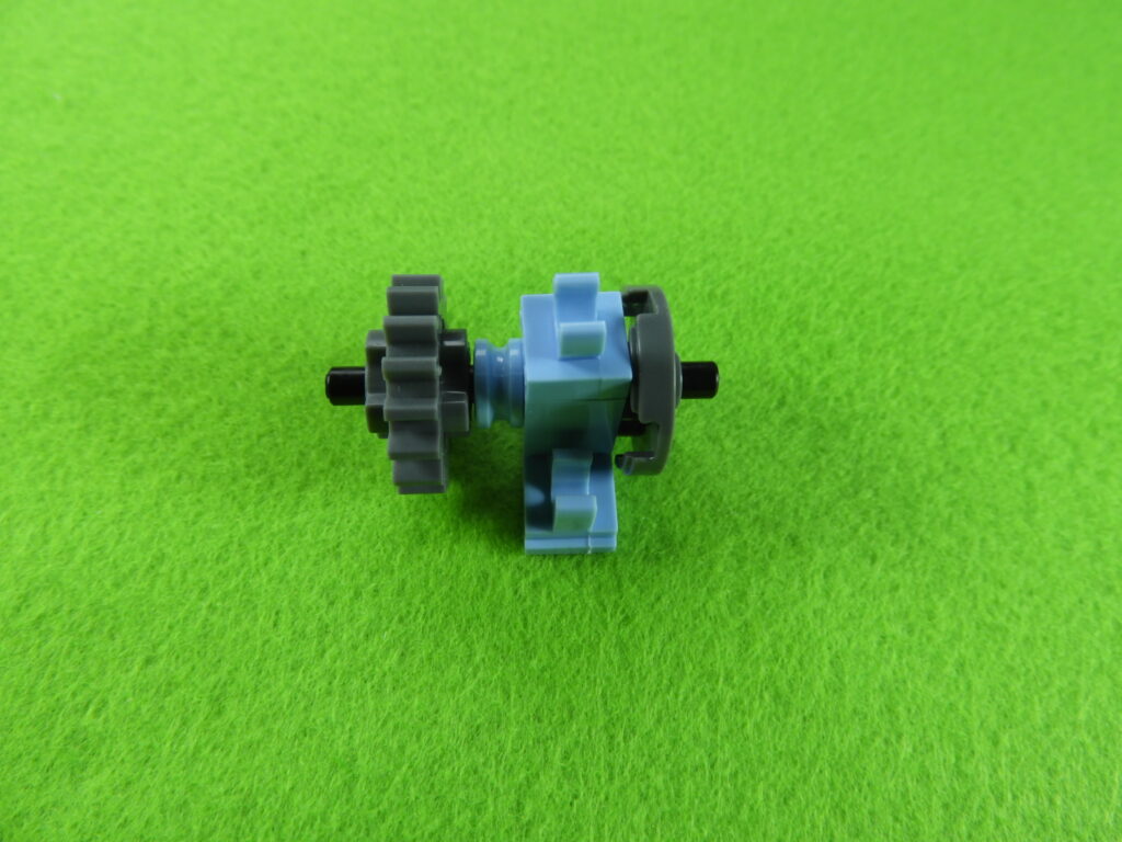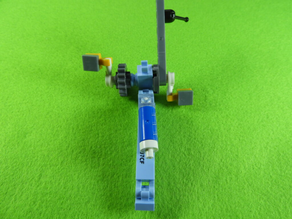 2.用意したブロックをペダルと後輪2ヵ所のギアにひっけけてからつなげると工程15番は完成します。