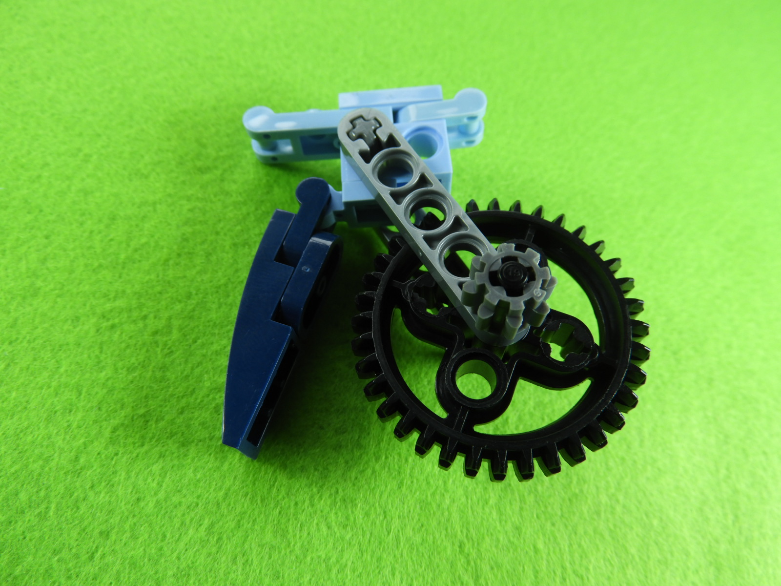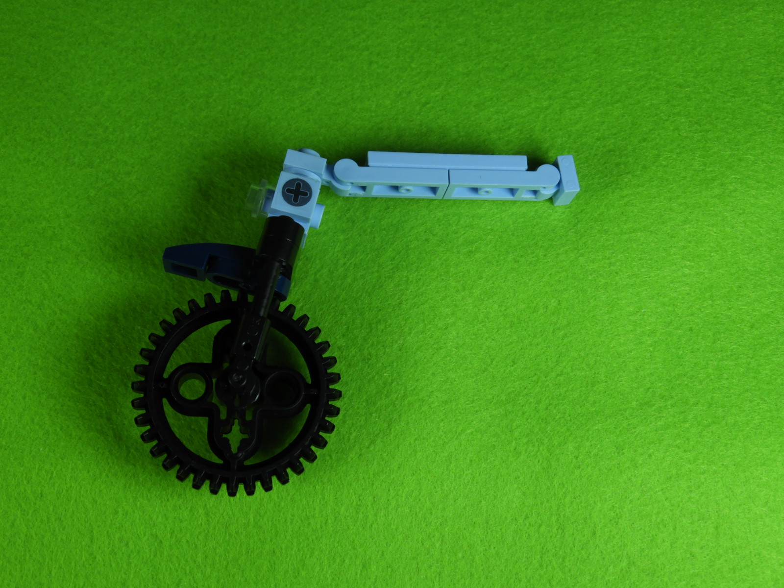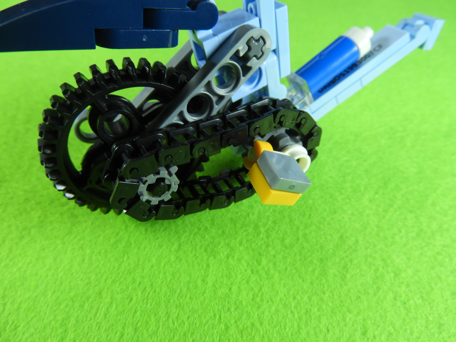 2.用意したブロックをペダルと後輪2ヵ所のギアにひっけけてからつなげると工程15番は完成します。