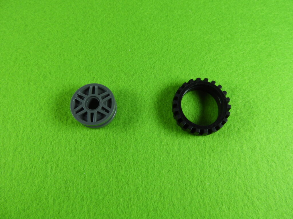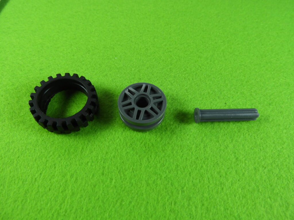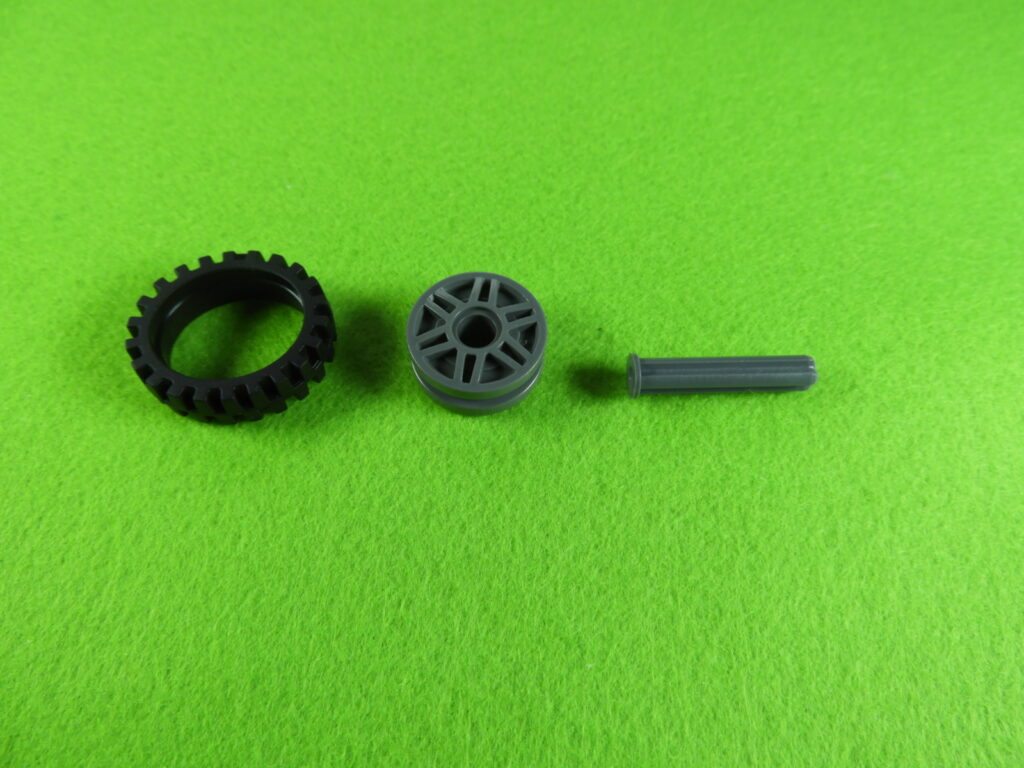 用意したタイヤとホイールを工程25番で組み立てたブロックに取り付けると工程26番は完成します。
