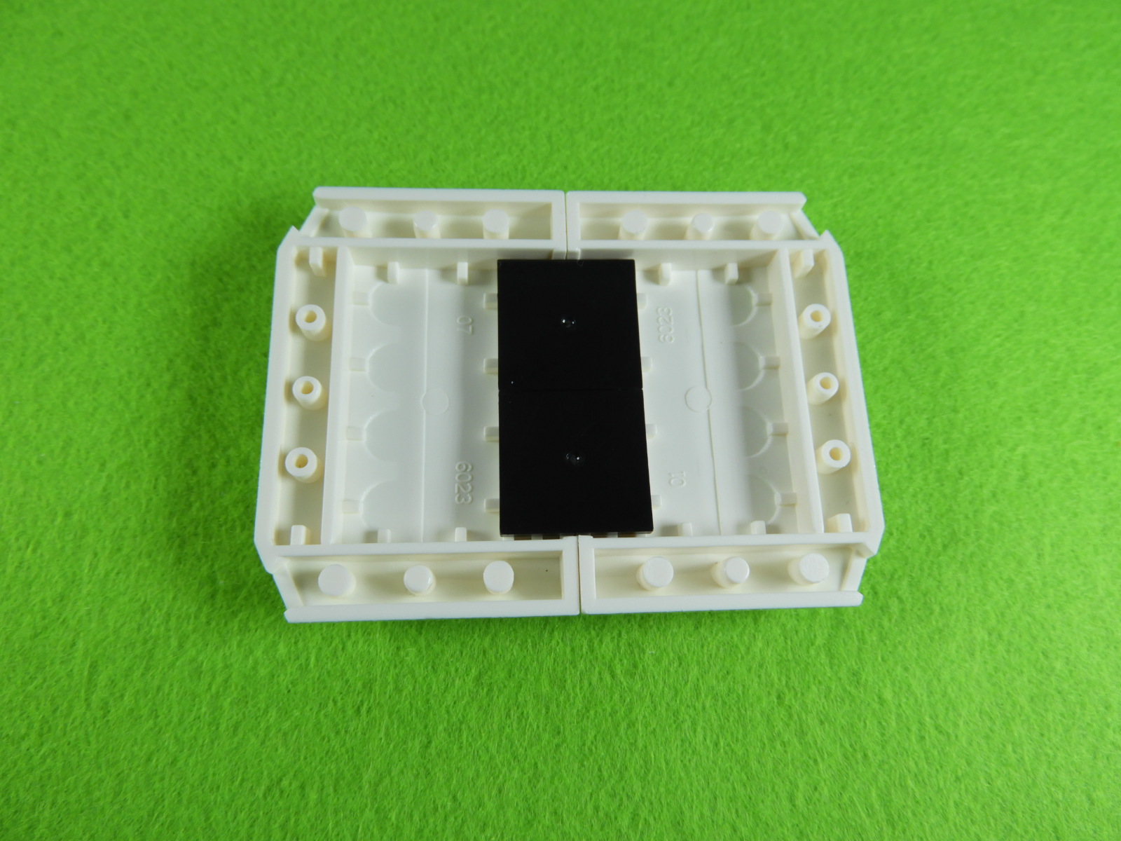 2.上記で組み立てたブロックを工程35番で組み立てたブロックに取り付けるとOKです。※ブロックを取り付けるときは文字が印刷されているプレートに取り付けるとよいでしょう。正面側のプレートにはあとでシールを貼り付けます。