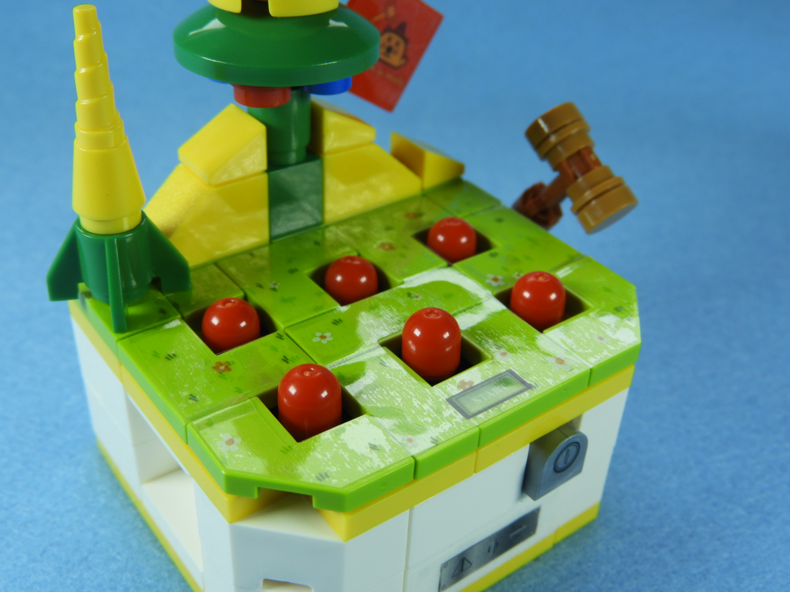 工程18番、20番、21番、24番で組み立てたブロックを取り付けるともぐらたたきは完成します。作業お疲れ様でした♪