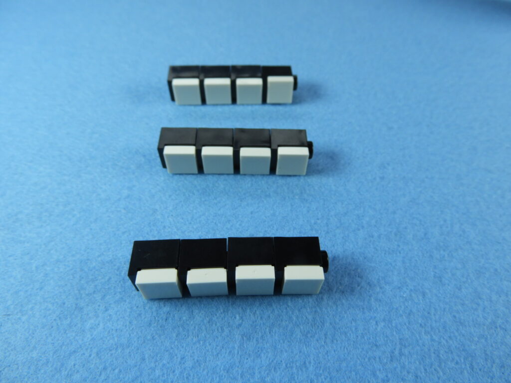 2.上記で組み立てたブロックの上に、黒ブロック2個とグレーブロック2個をのせます。