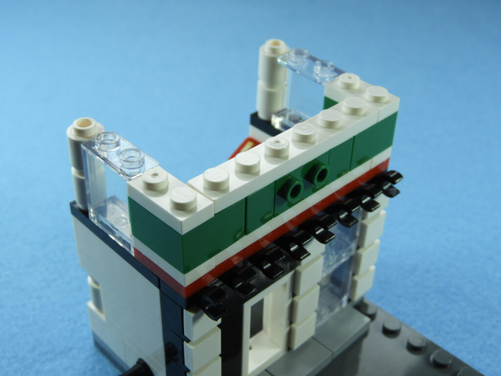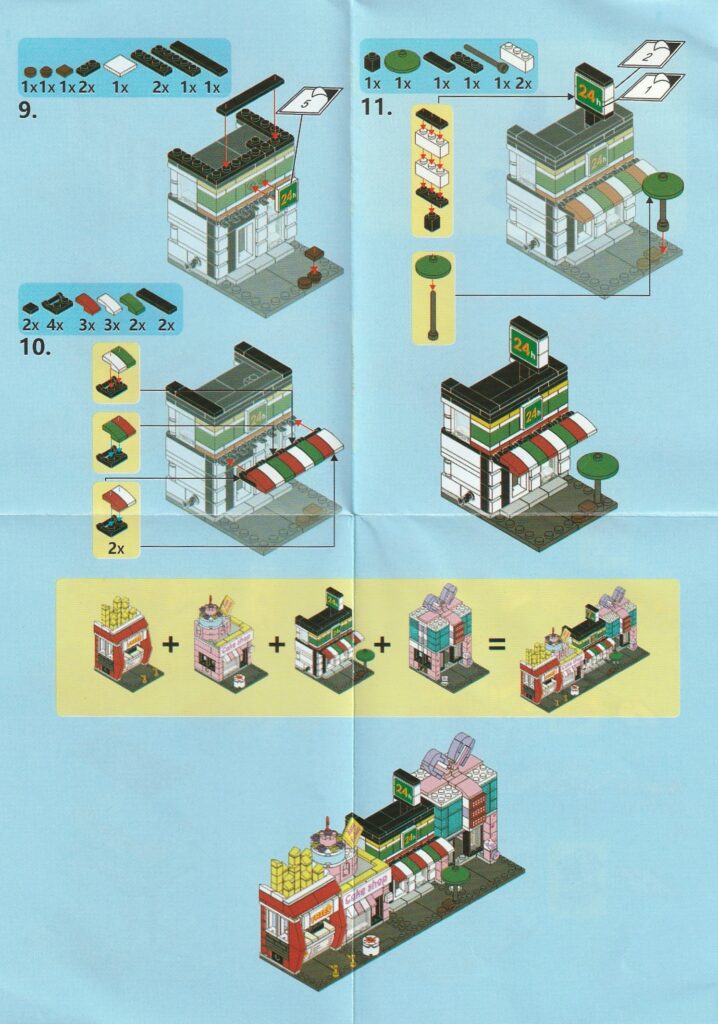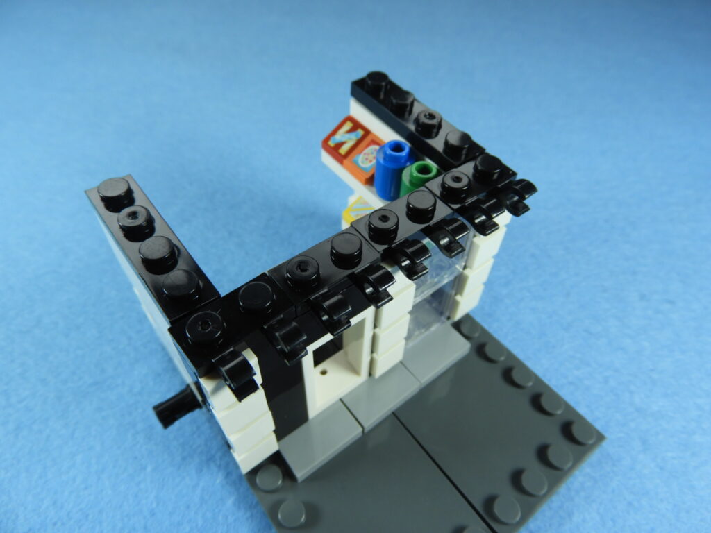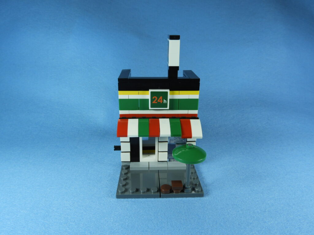 2.上記で組み立てたブロックを工程10番で組み立てたブロックに取り付けるとコンビニエンスストアは完成します。作業お疲れ様でした♪