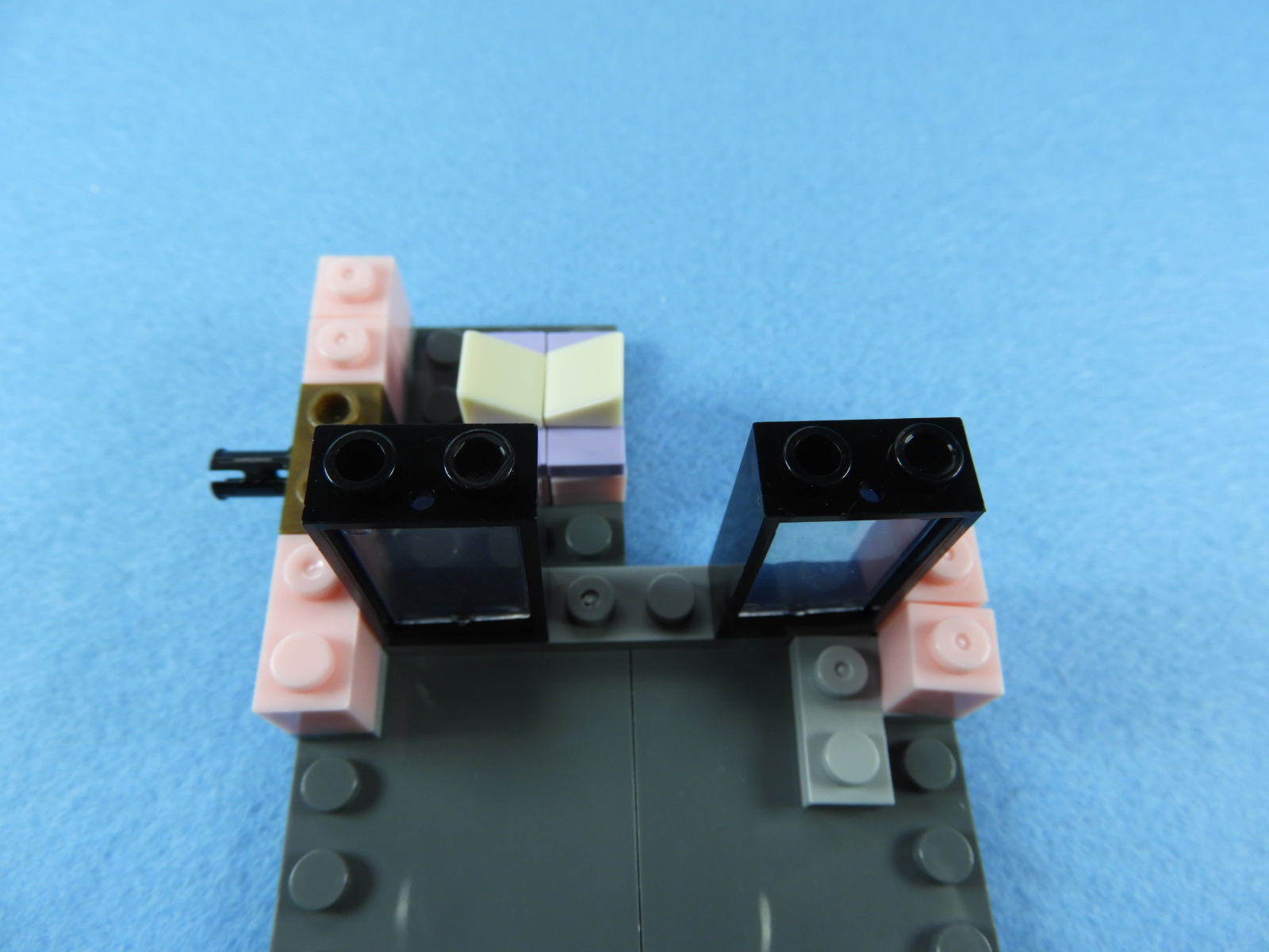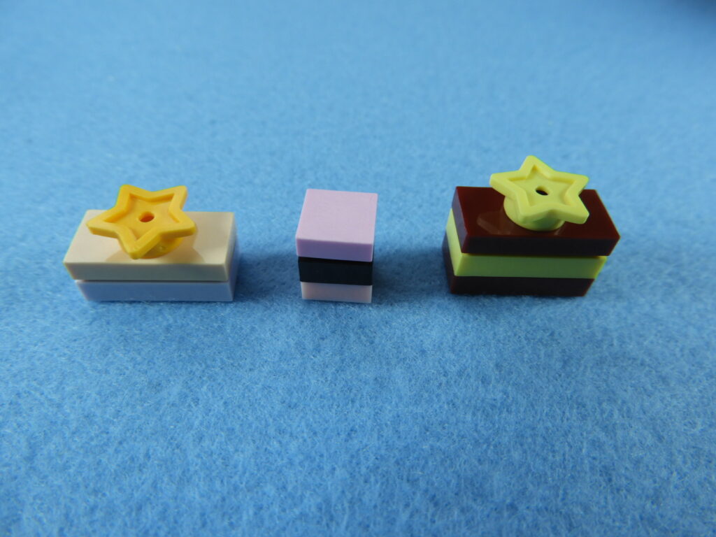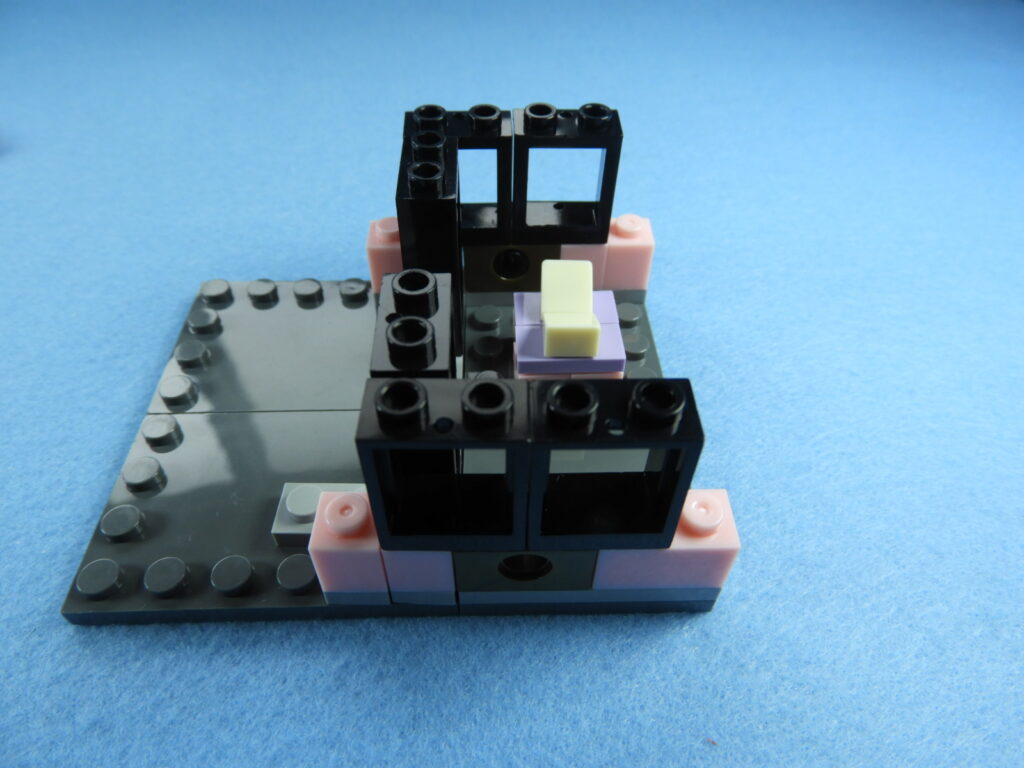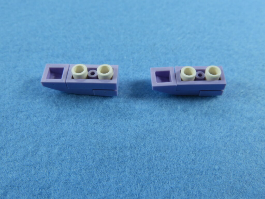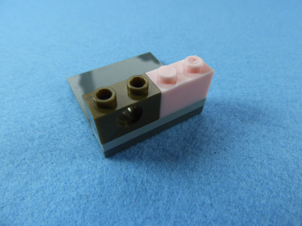 それでは工程7番で使用するブロックを並べます。1.用意したブロックを下記写真のように組み立てます。2.上記で組み立てたブロックと残りの白ブロック1個を工程6番で組み立てたブロックに取り付けるとOKです。