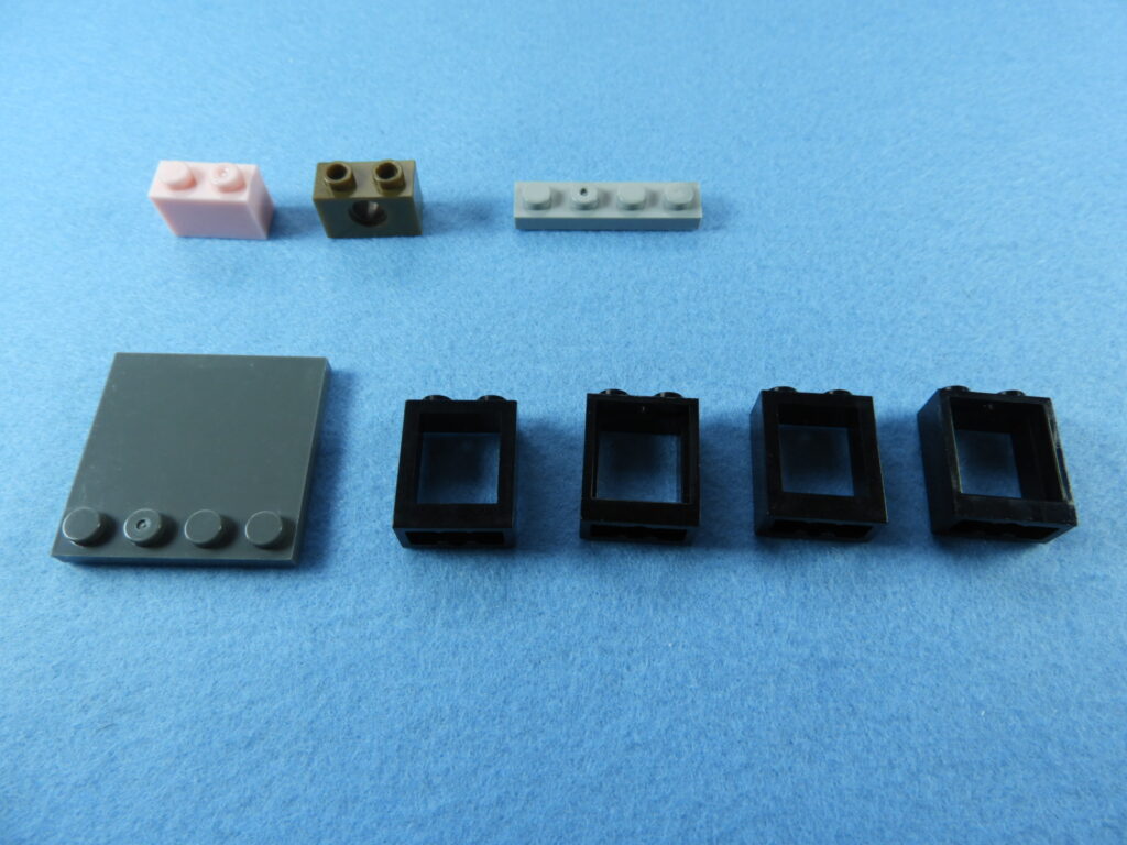 それでは工程9番で使用するブロックを並べます。1.用意したブロックを下記写真のように組み立てます。2.上記で組み立てたブロックと残りのブロックを工程8番で組み立てたブロックに取り付けると工程9番は完成します。