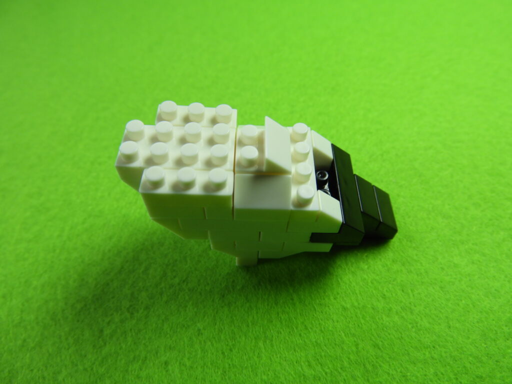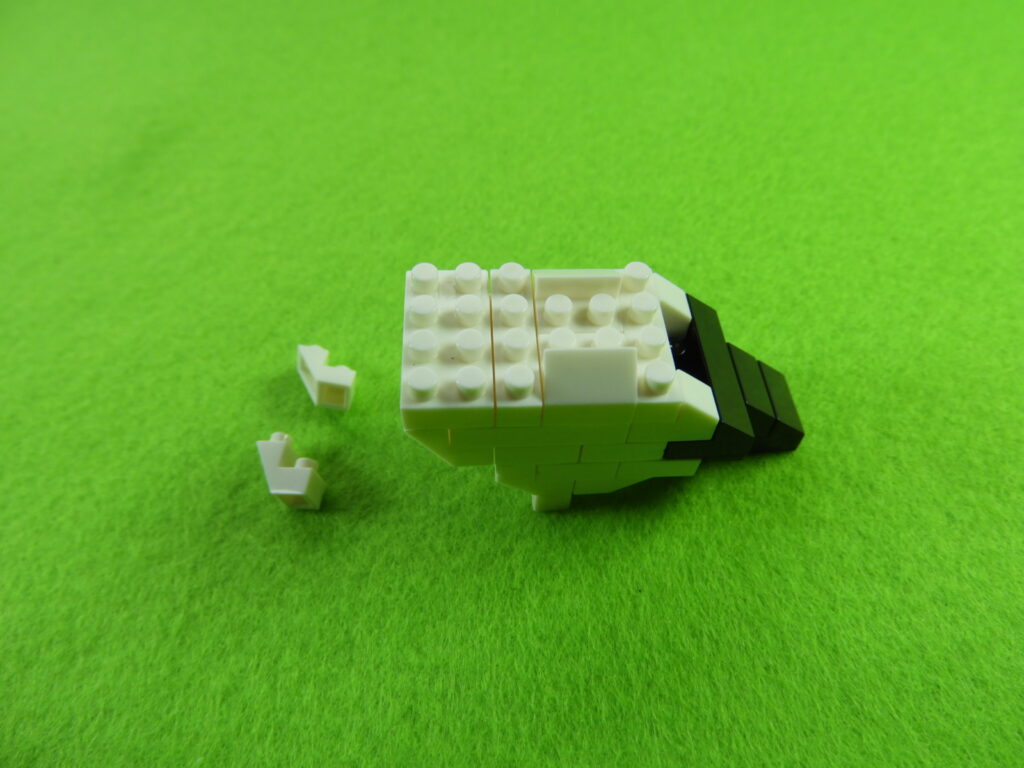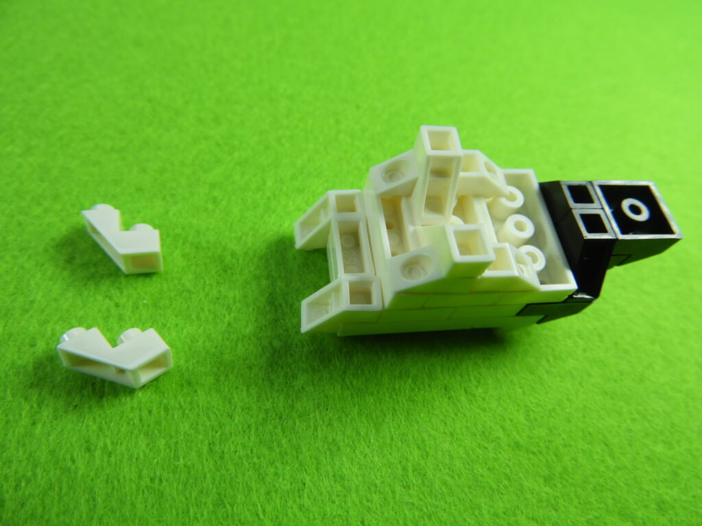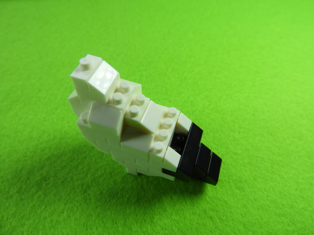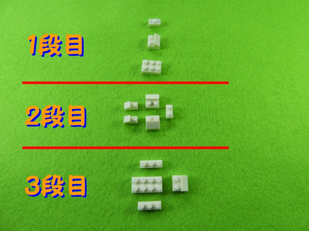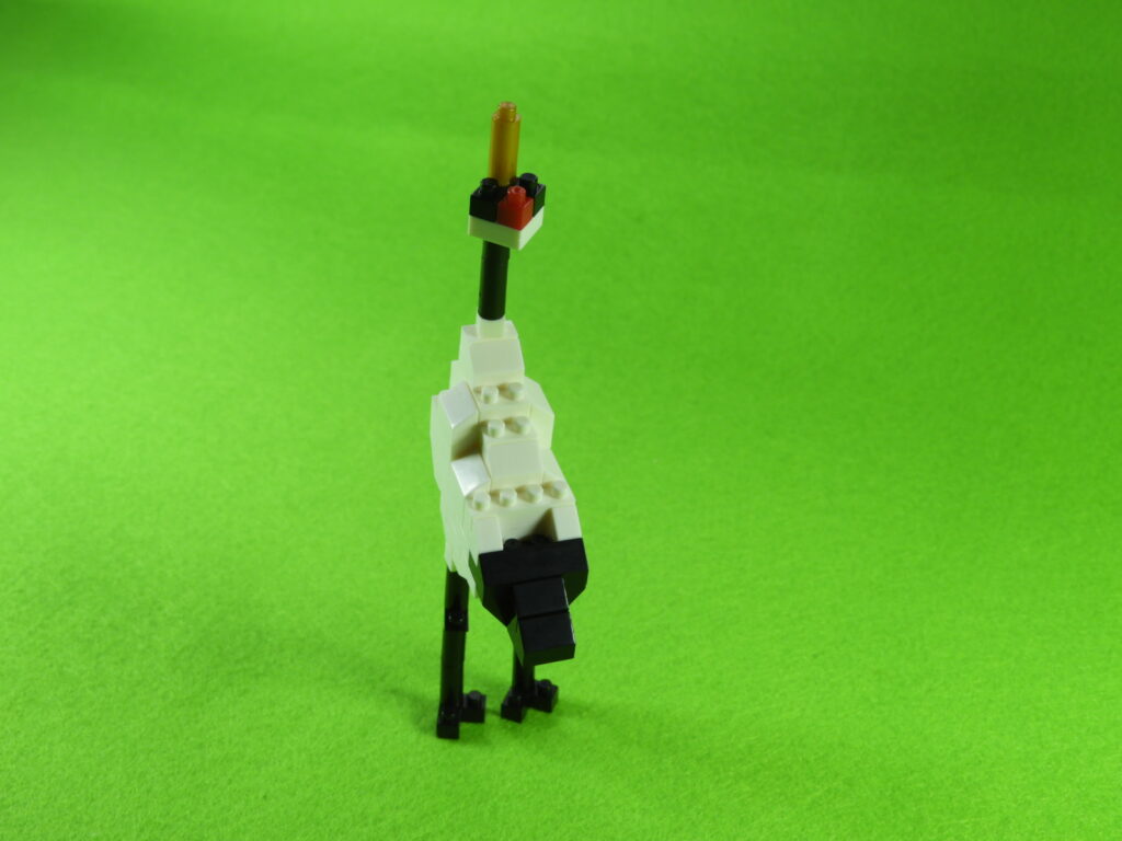 用意したブロックを下記写真のように順番に組み立てると工程3番は完成です。タンチョウの首から頭になります。