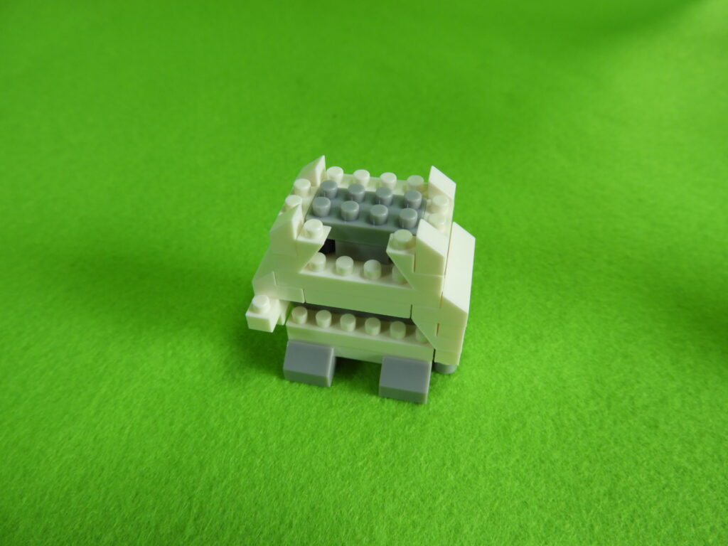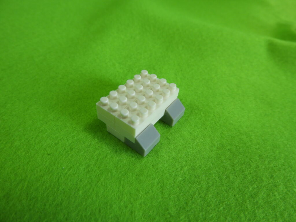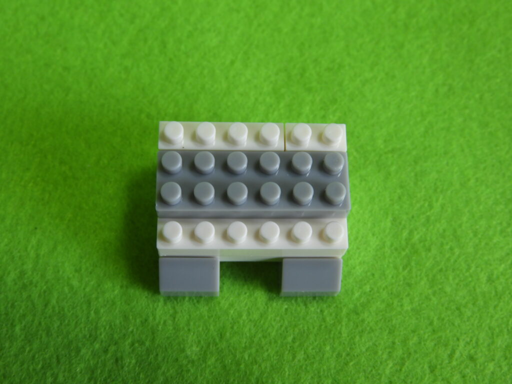 4.最後に、1段目のブロック2個をのせると工程1番は完成します。