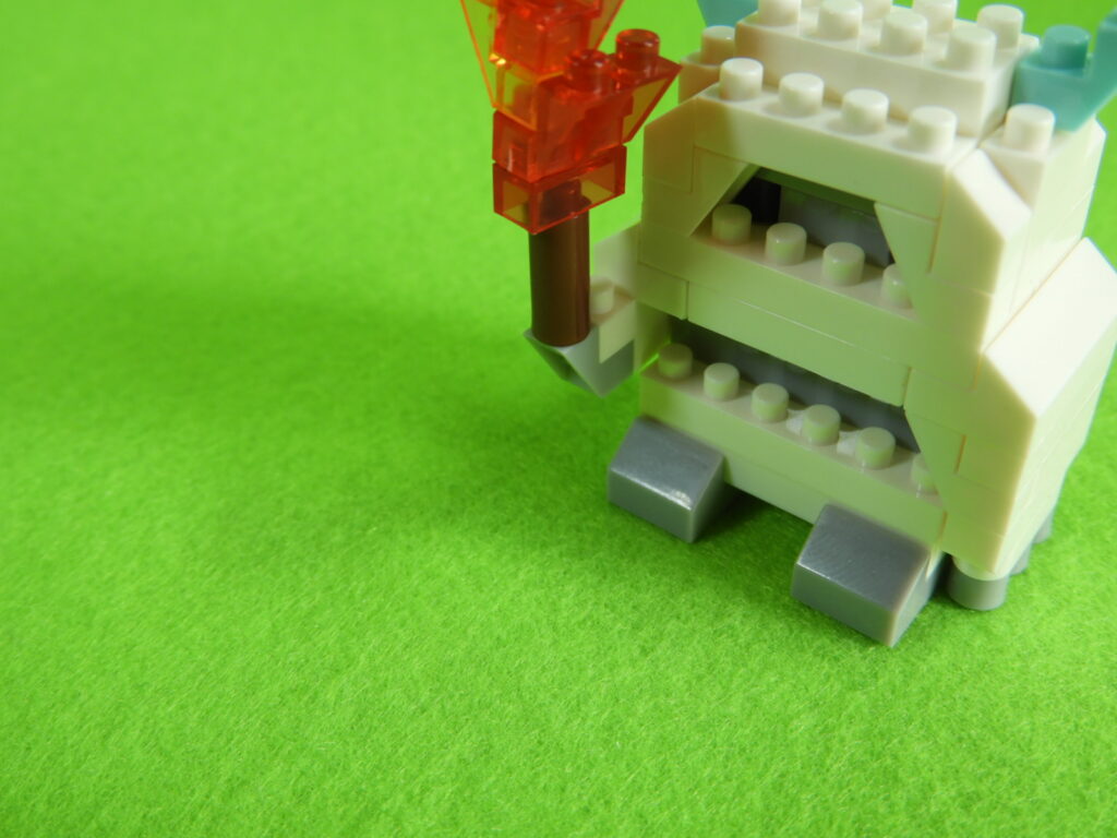 4.最後に、工程3番で組み立てた松明をイエティの右手に取り付けるとイエティは完成します。作業お疲れ様でした♪