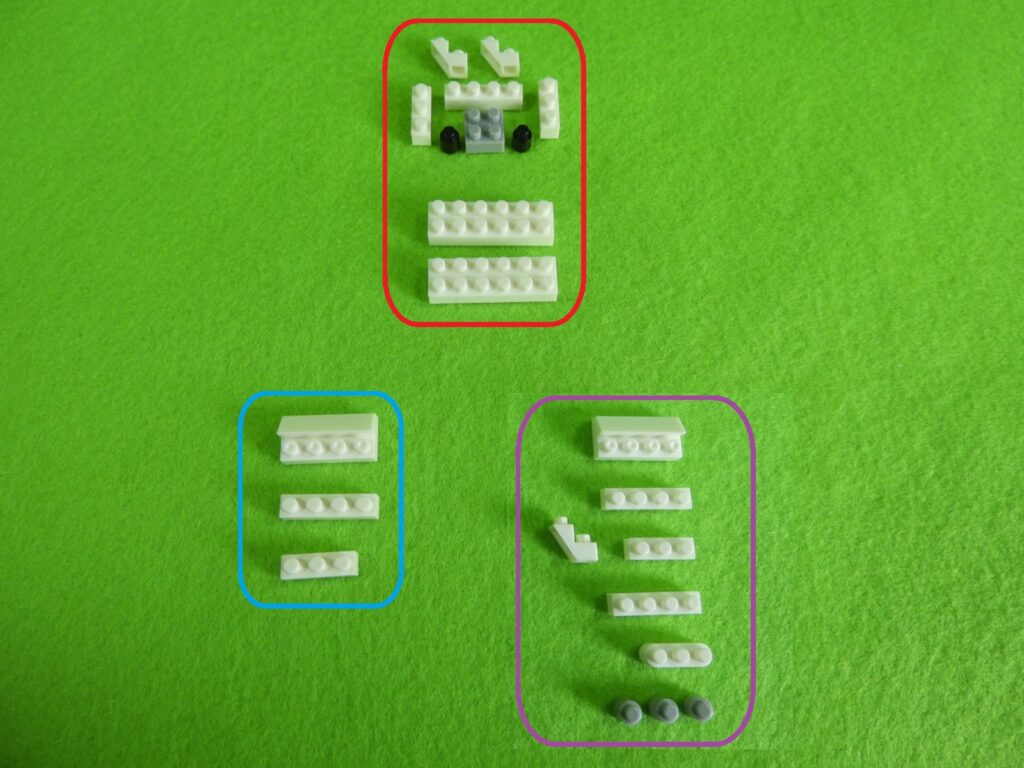 4.上記で組み立てたブロックの上に、赤枠下の白ブロック2個をのせます。