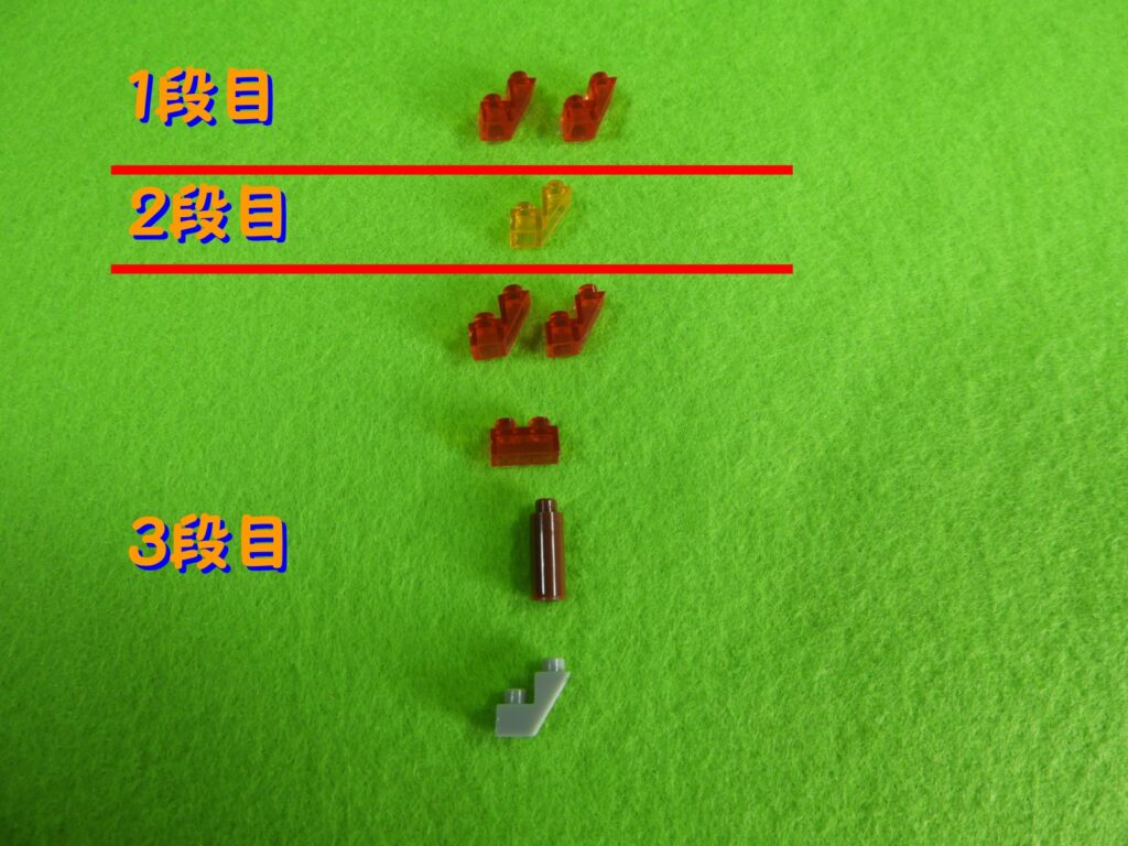 1.3段目のブロックは下から順番に下記写真のように取り付けていきます。
