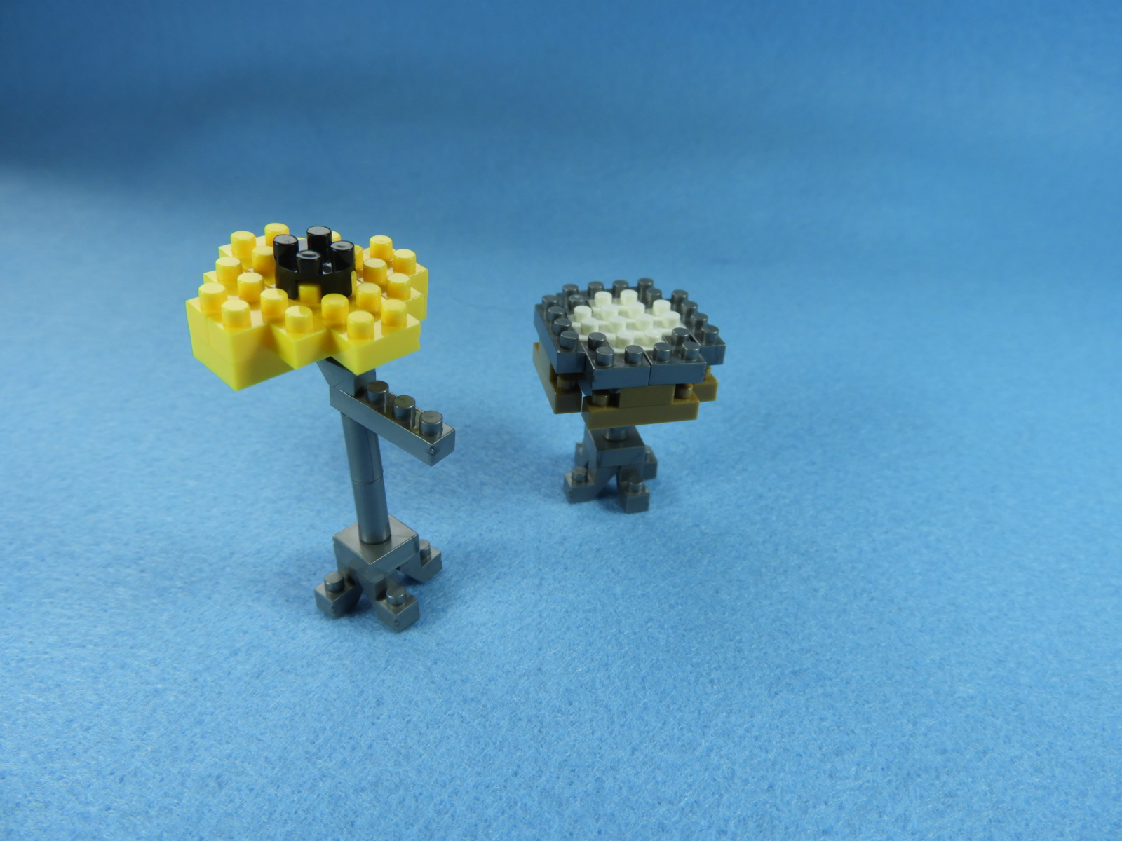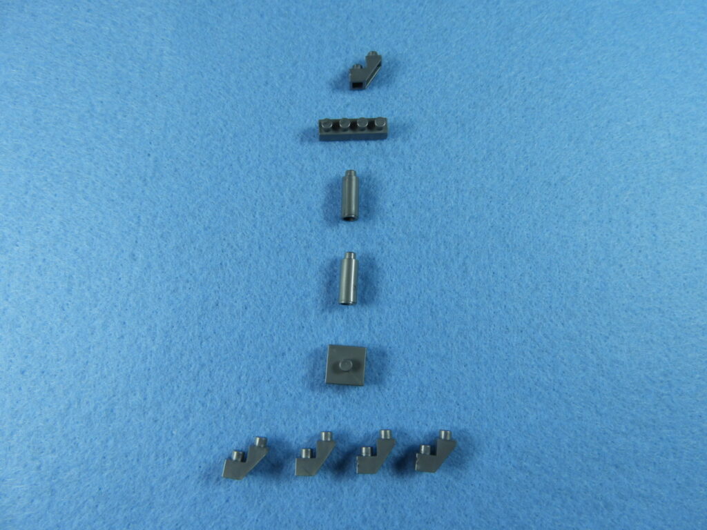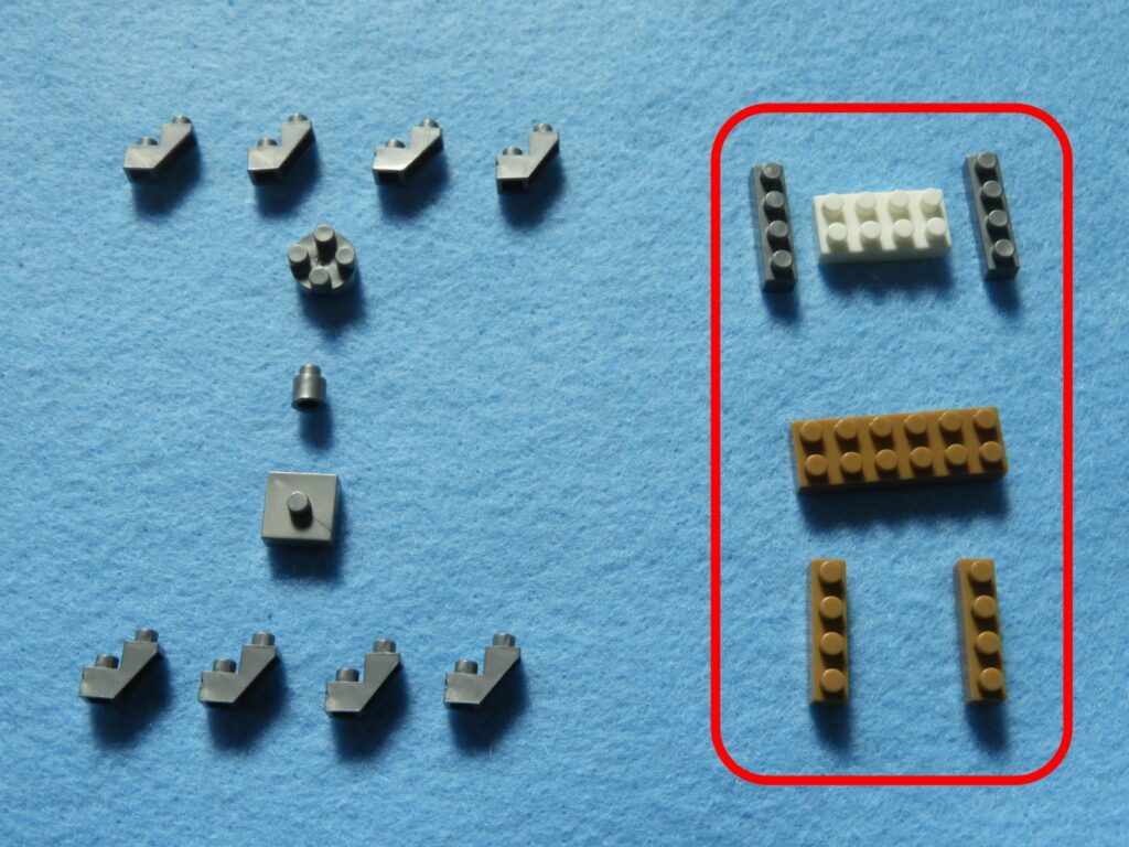 1.正方形ブロックの下に、銀色ブロック4個を取り付けます。